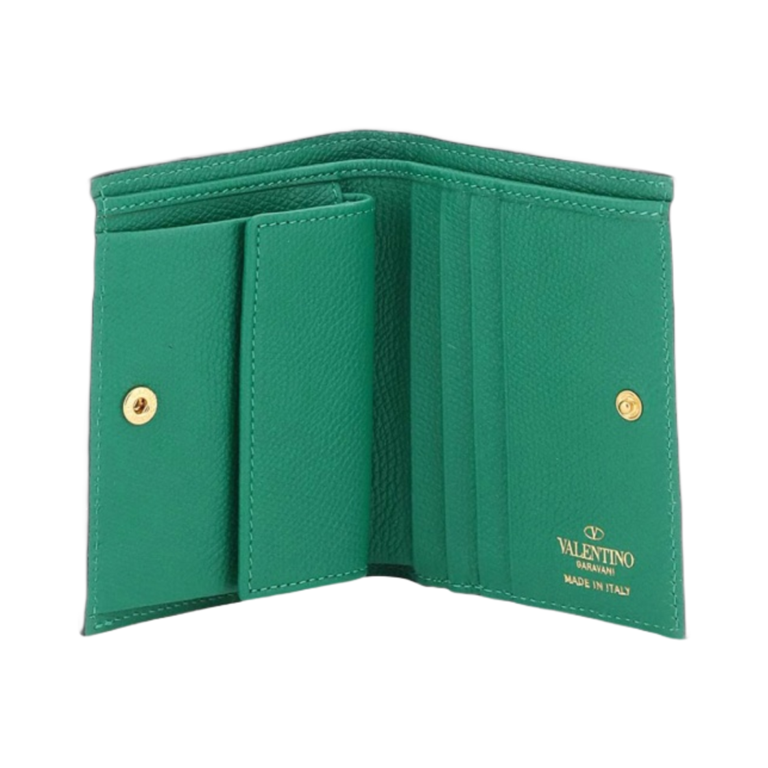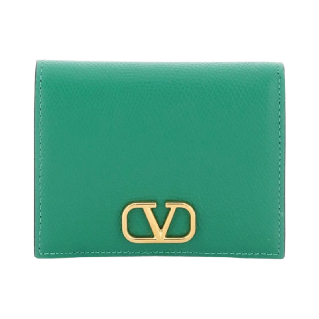 Valentino Compact Vlogo Signature Grainy Calfskin Wallet Green