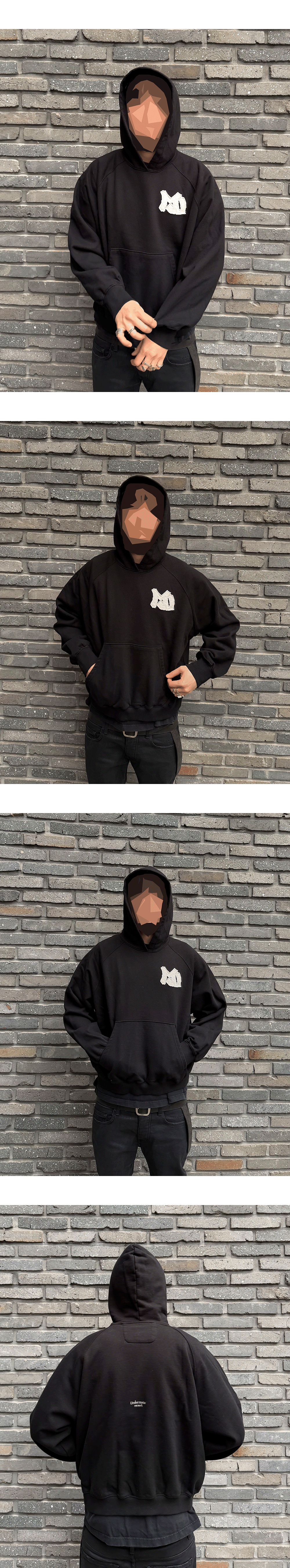 언더마이카 무.151 스몰 아플리케 로고 후디 블랙