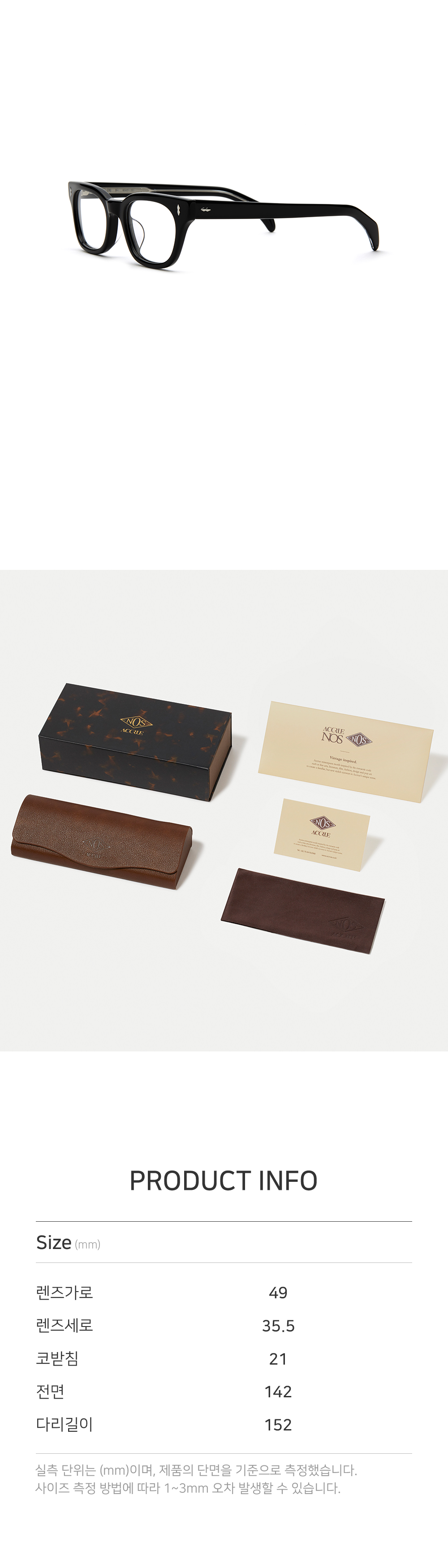 *안경테에 장착되어있는 렌즈는 프레임의 형태의 변형을 막기 위한 플라스틱 데모렌즈입니다.