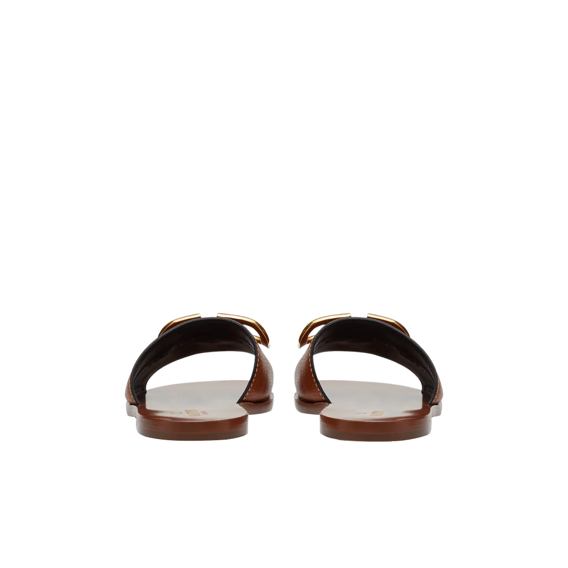 (W) 발렌티노 카프스킨 포인트 브이로고 시그니쳐 슬라이드 샌들 브라운