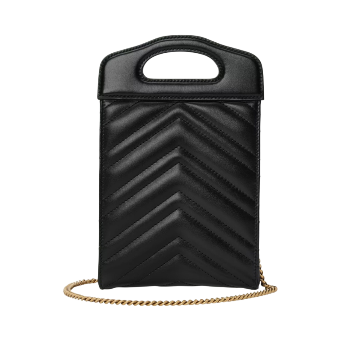구찌 GG 마몽 마틀라세 탑 핸들 미니백 블랙