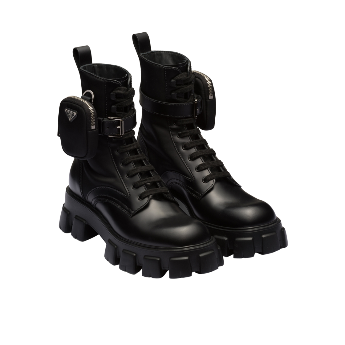 프라다 모놀리스 브러쉬드 레더 앤 나일론 부츠 블랙