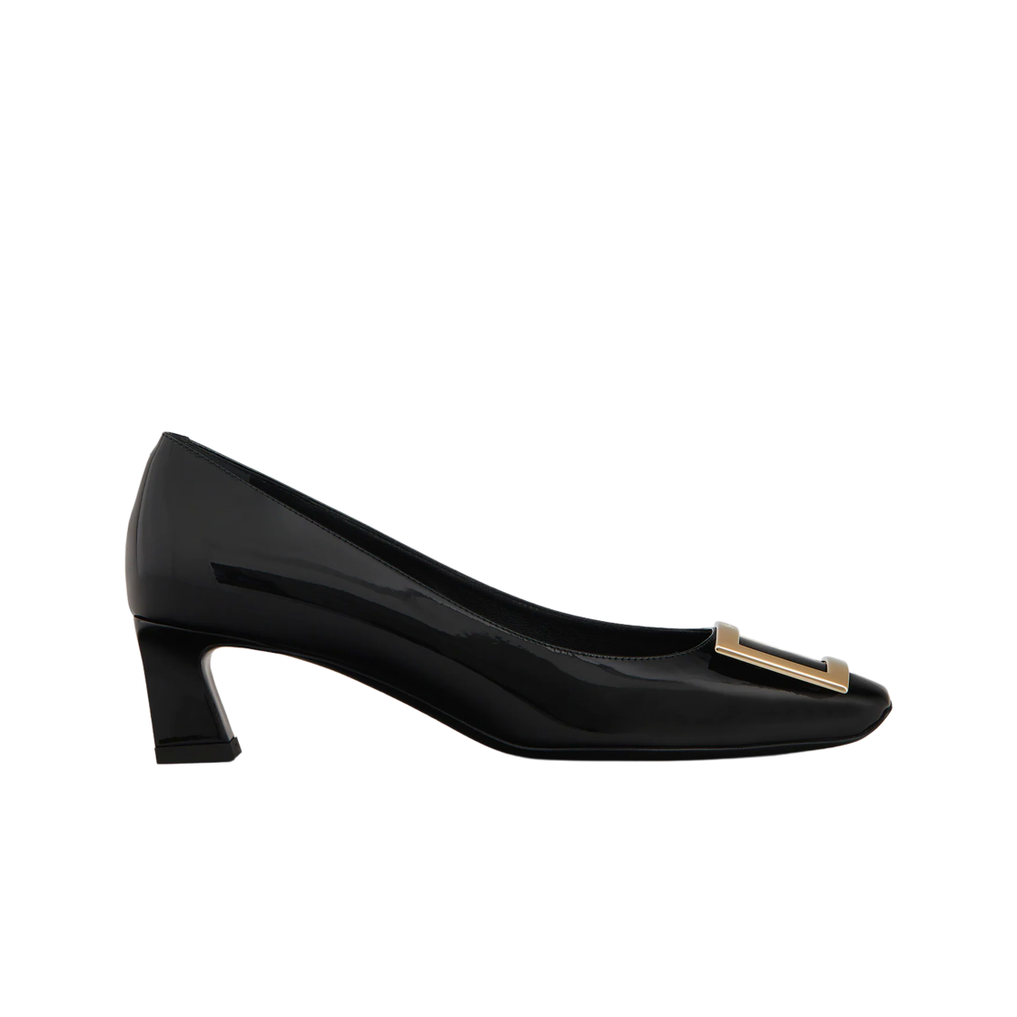 (W) Roger Vivier Trompette Metal Buckle Pumps Patent Leather Black