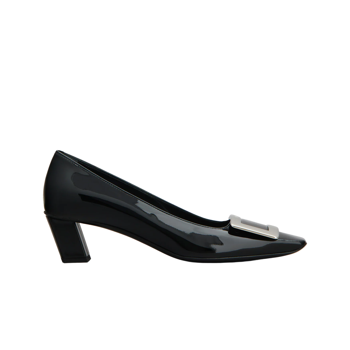(W) Roger Vivier Belle Vivier Metal Buckle Pumps Patent Leather Black