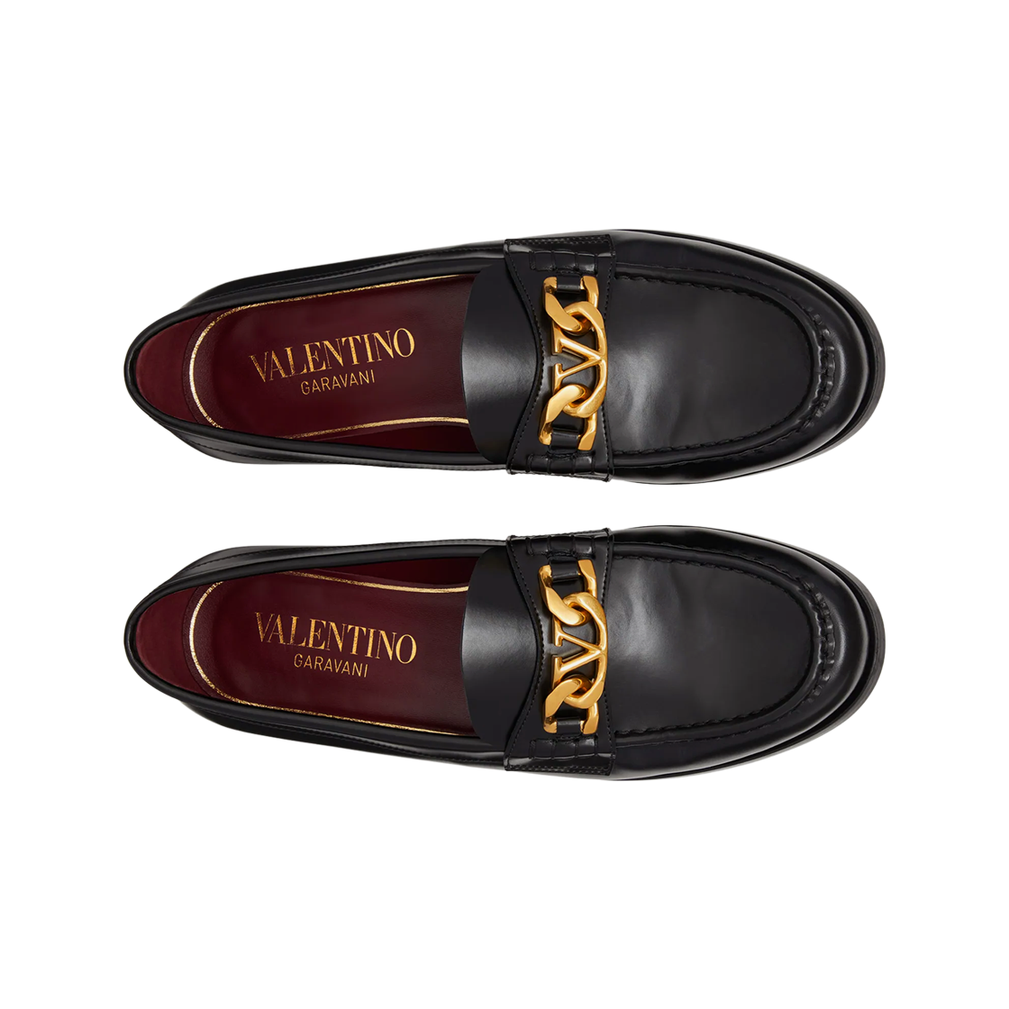 발렌티노 브이로고 체인 카프스킨 로퍼 블랙