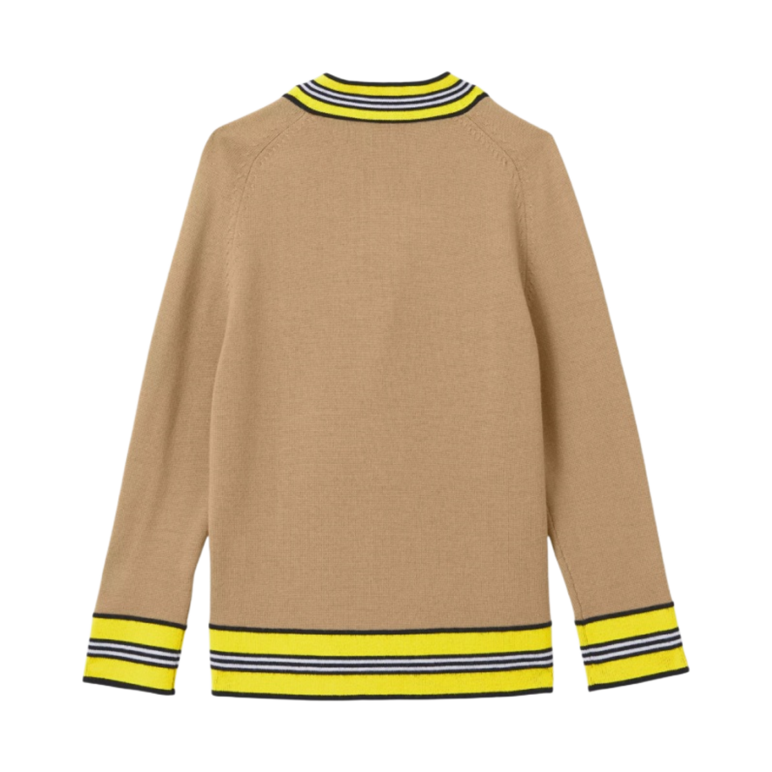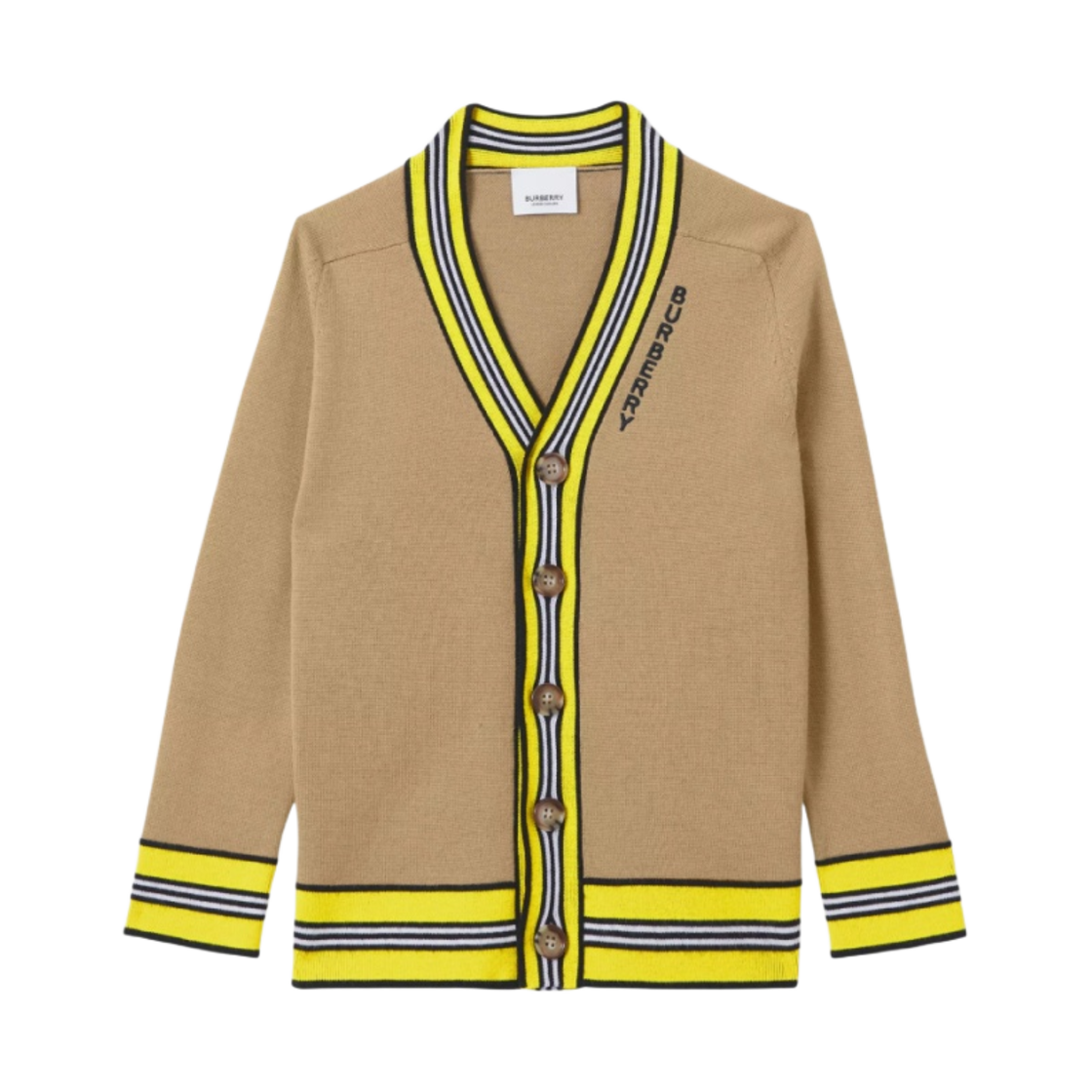 (Kids) Burberry Stripped Trim Wool Cardigan Archive Beige
