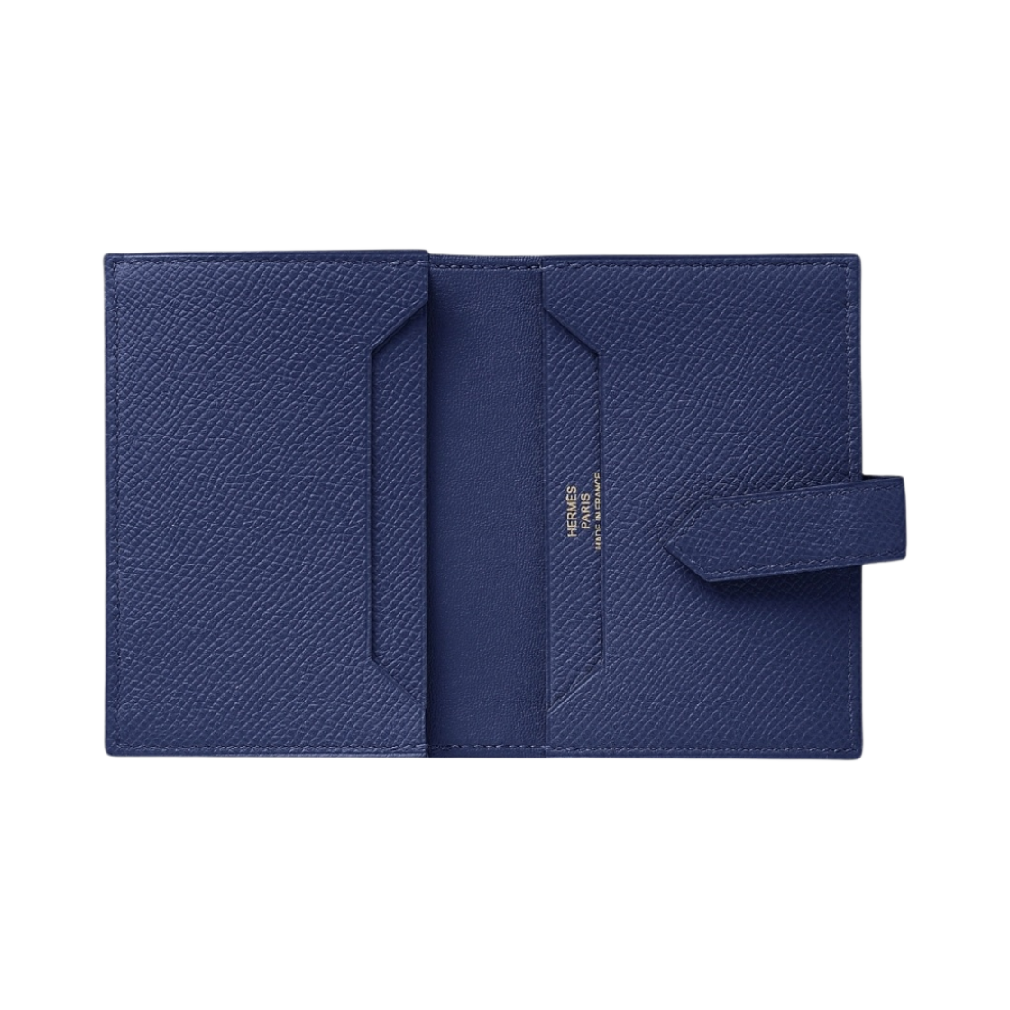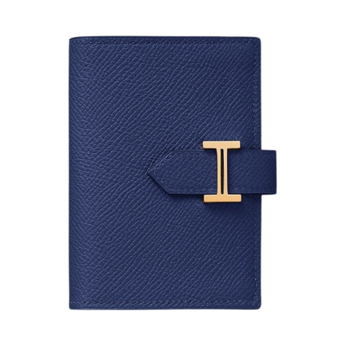 Hermes Bearn Card Holder Epsom & Gold Bleu Saphir