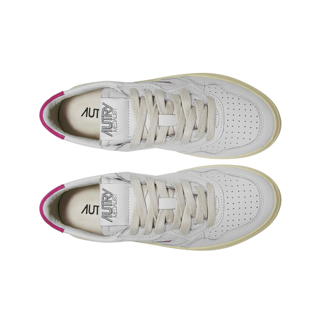(W) 오트리 메달리스트 로우 레더 스니커즈 화이트 푸시아
