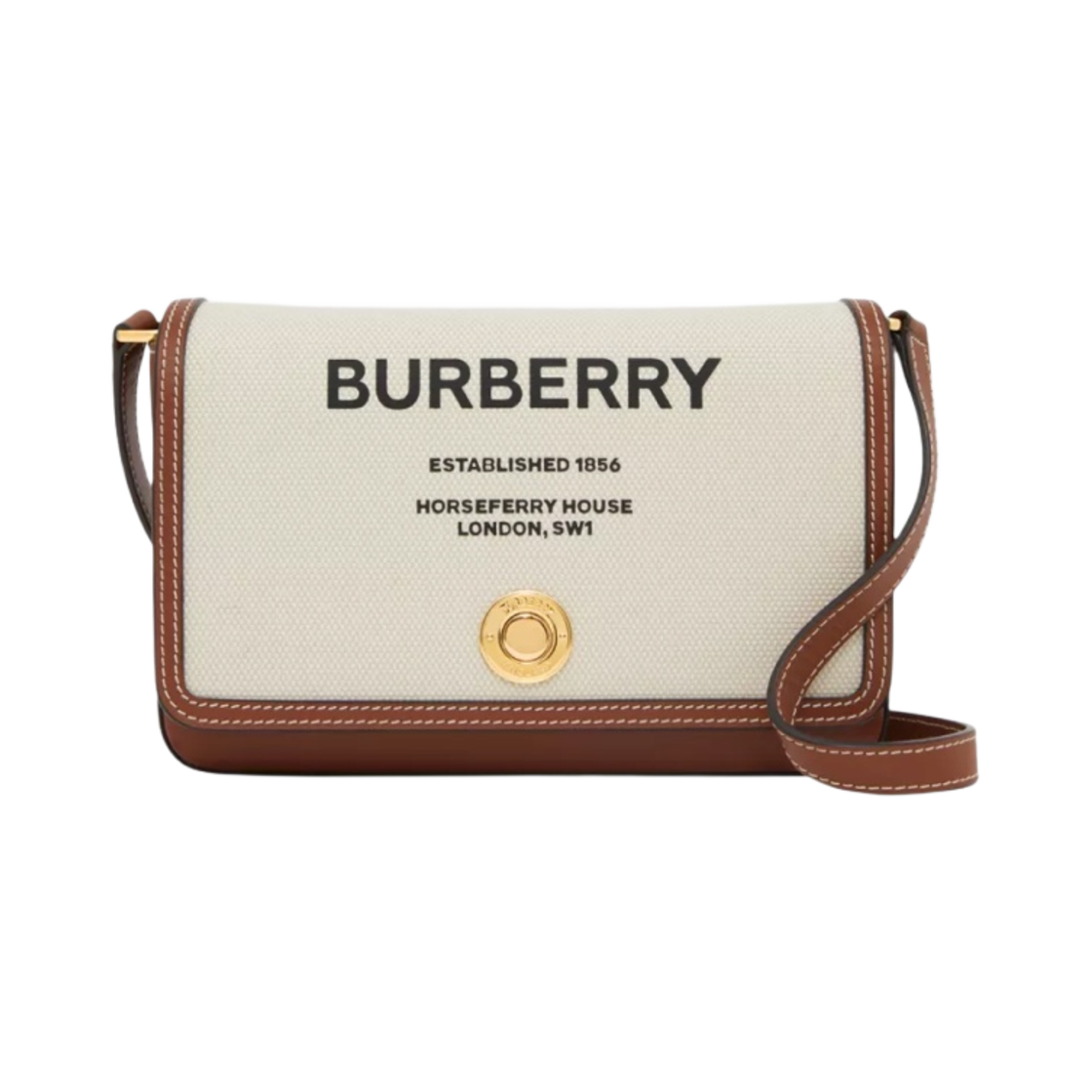 Buberry Mini Horseferry Print Canvas Leather Note Bag Natural Tan
