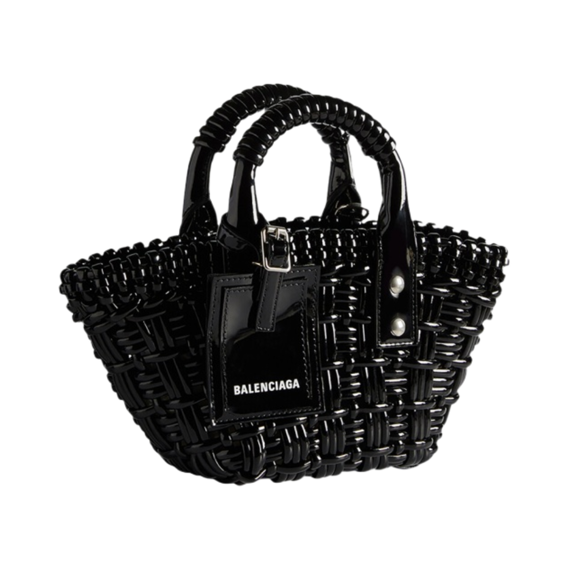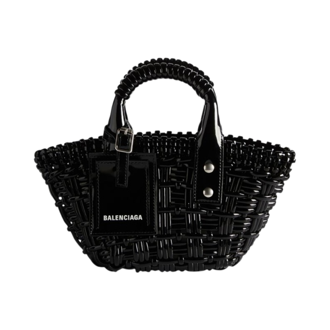 발렌시아가 바니시드 페이크 카프스킨 비스트로 XXS 스트랩 베스킷 블랙
