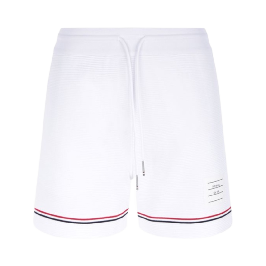(W) Thom Browne Ottoman Rib Stripe Hem Mid Thigh Shorts White