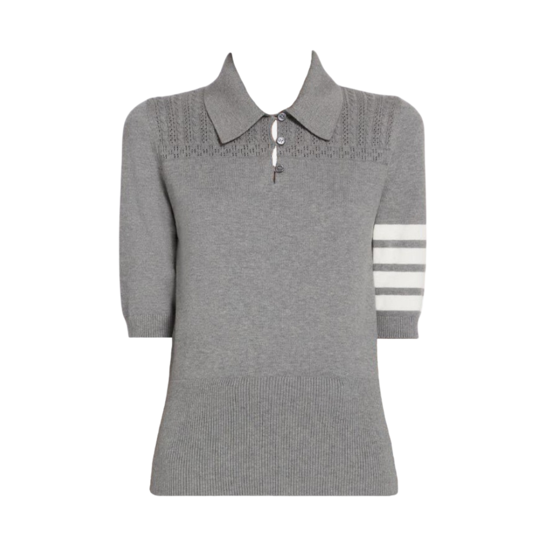 (W) 톰브라운 코튼 헥터 메달리온 사선 키홀 폴로 라이트 그레이