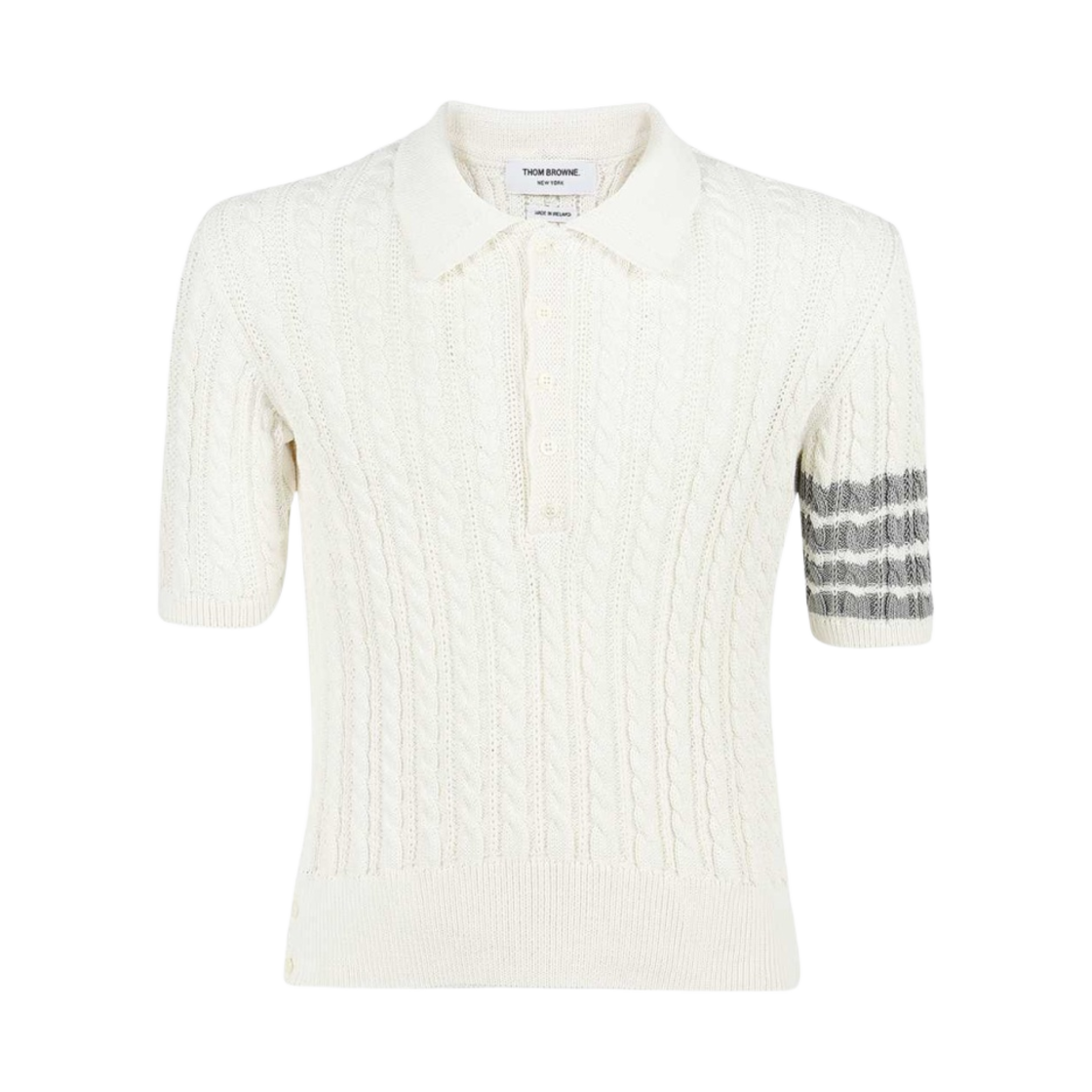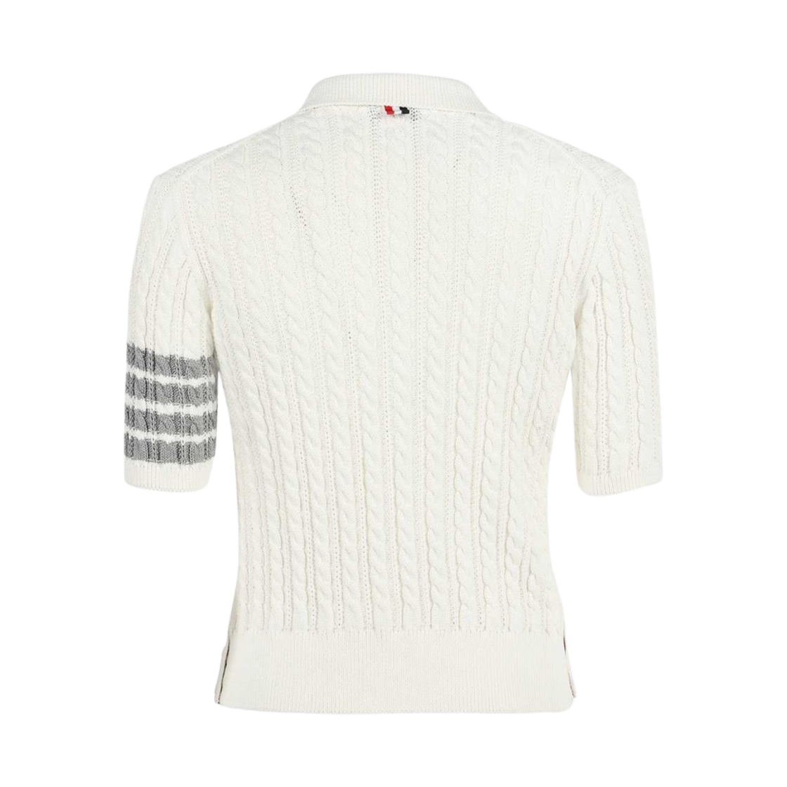 Thom Browne Cotton 4-Bar Cable Knit Short Sleeve Polo Shirt White