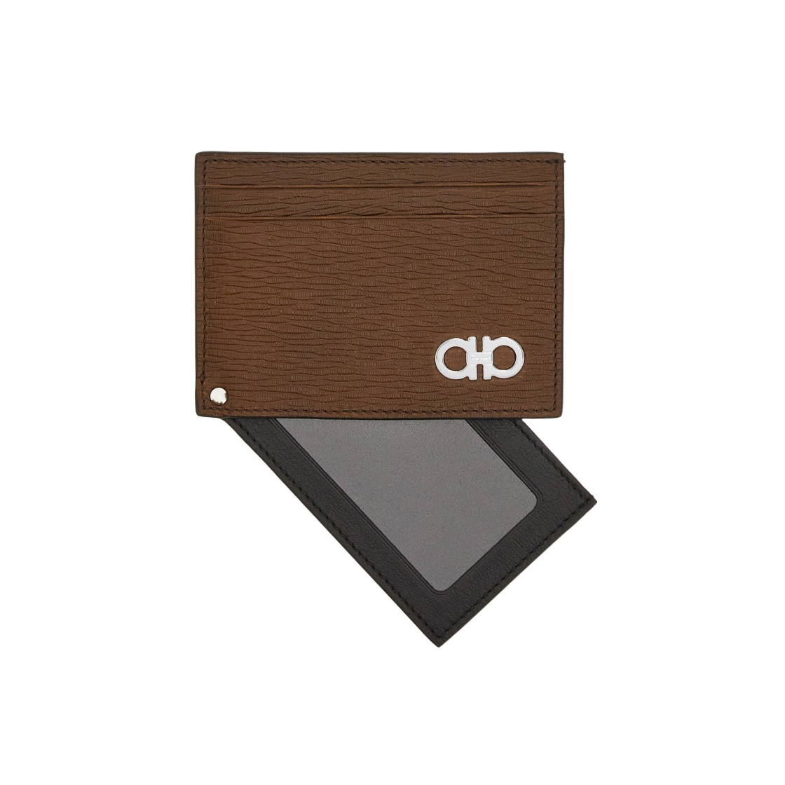 Ferragamo Gancini Card Pull-Out ID Window Brown Black