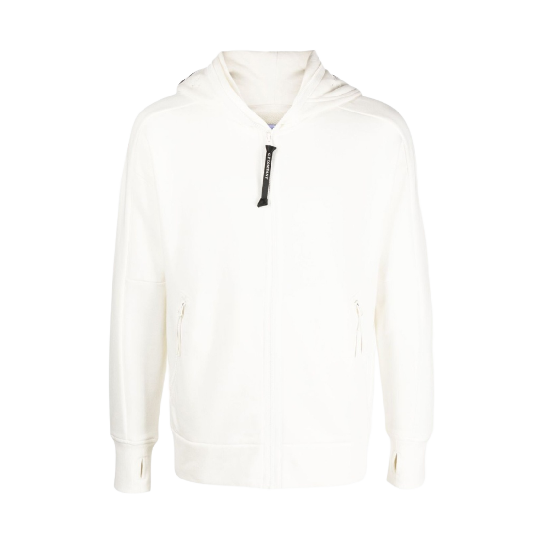 C.P. 컴퍼니 다이애그널 레이즈드 플리스 지퍼 고글 후드 거즈 화이트 - 22FW