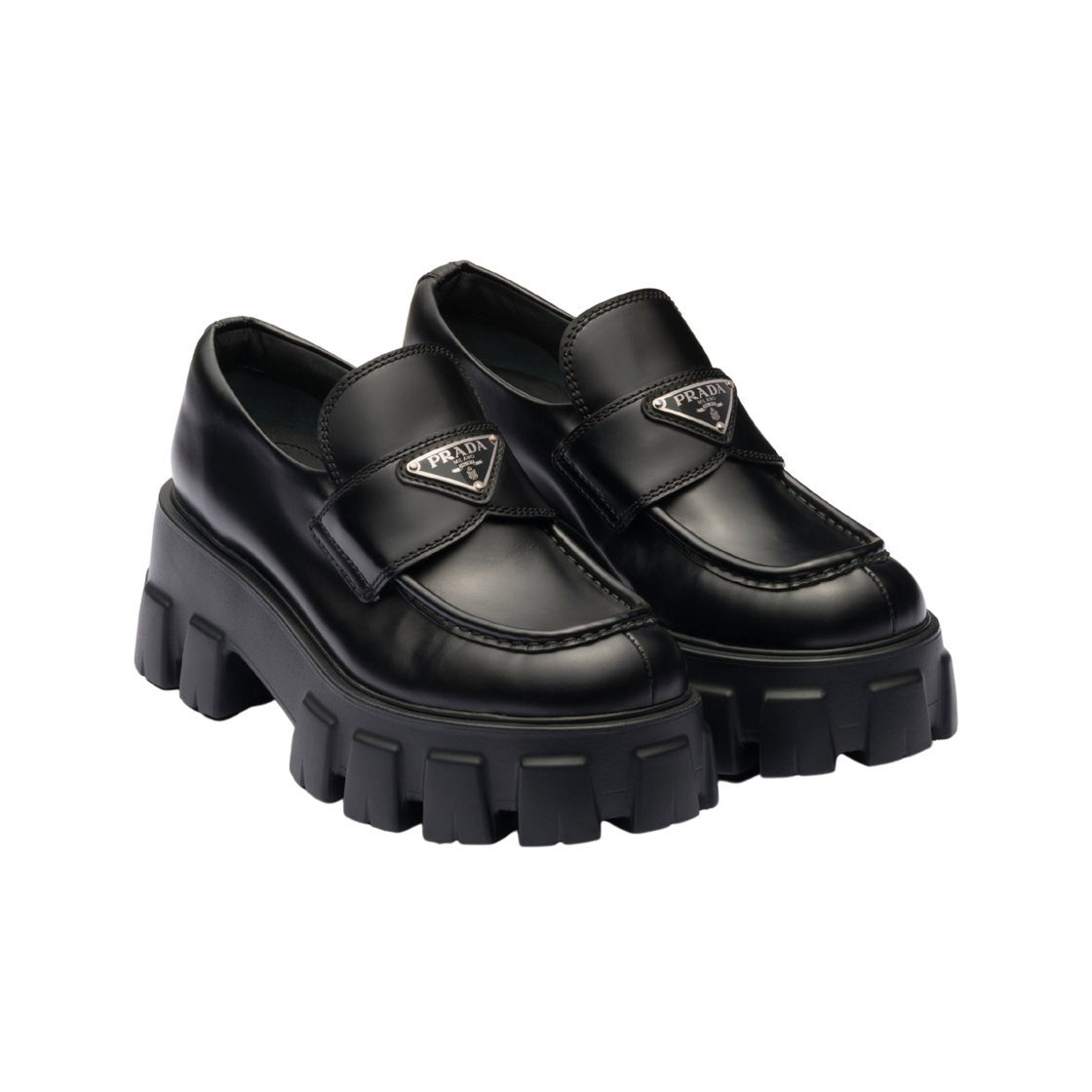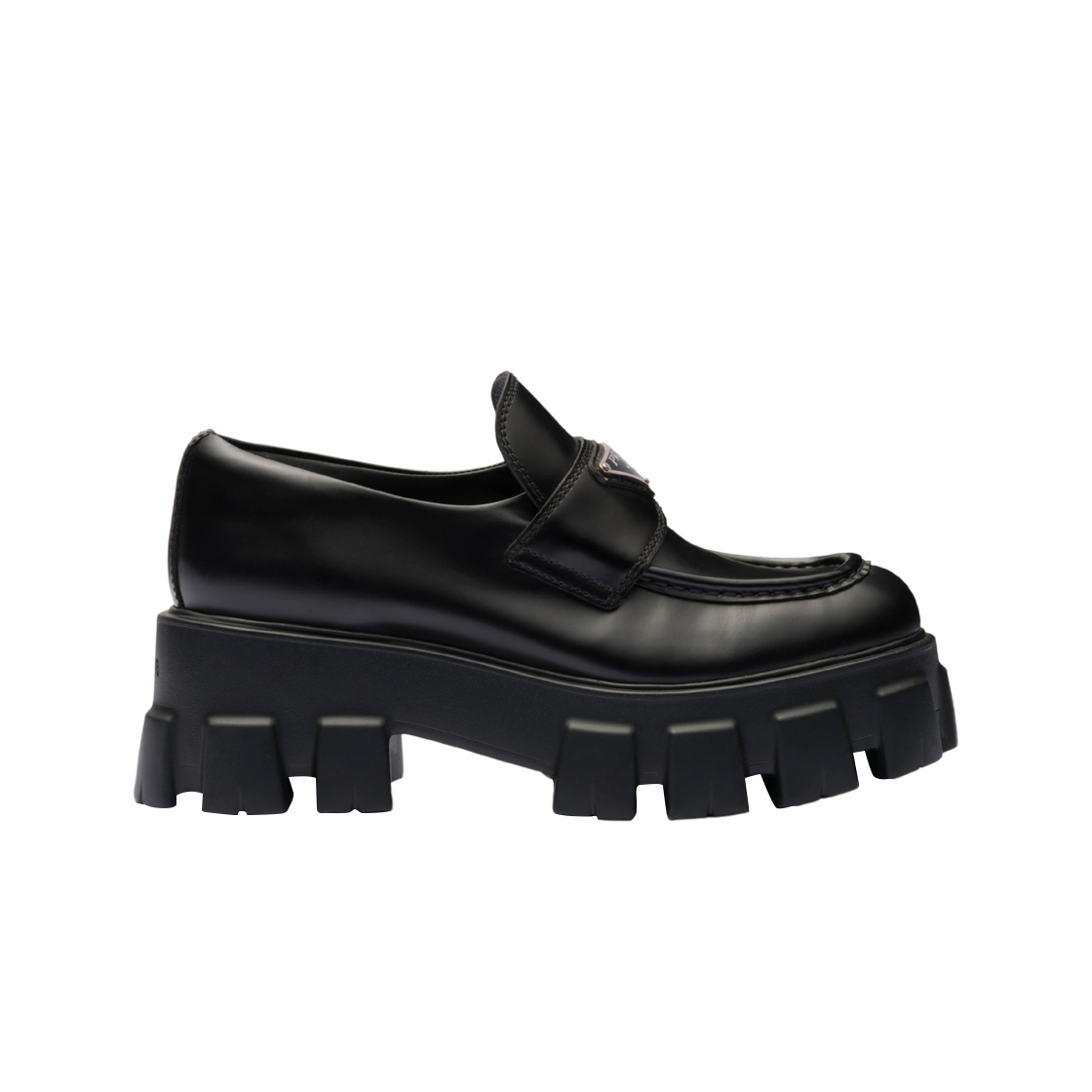 (W) 프라다 브러쉬드 레더 모놀리스 로퍼 블랙