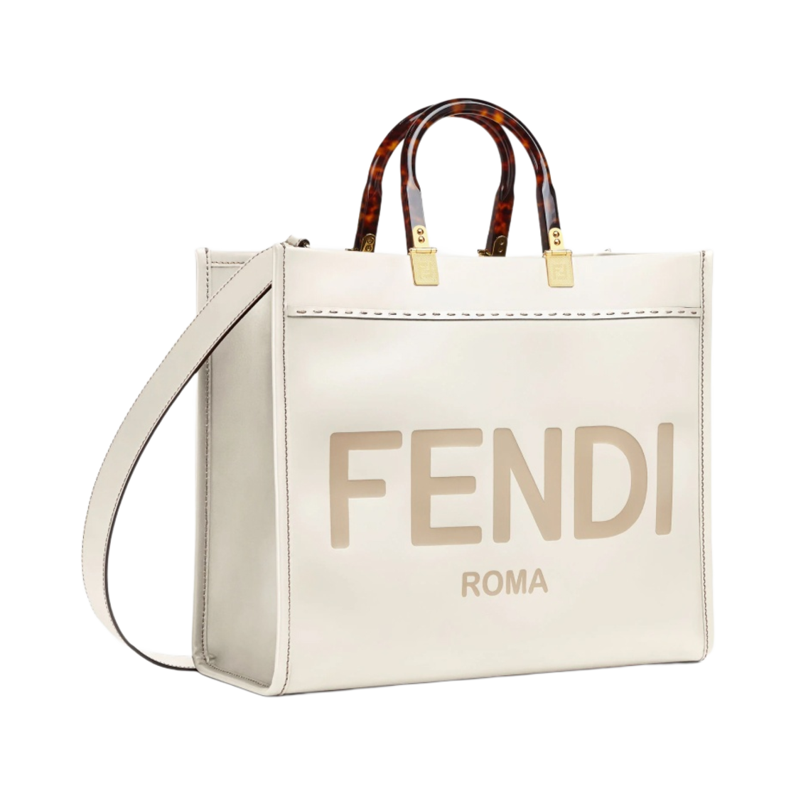 펜디 선샤인 미디움 레더 쇼퍼 화이트