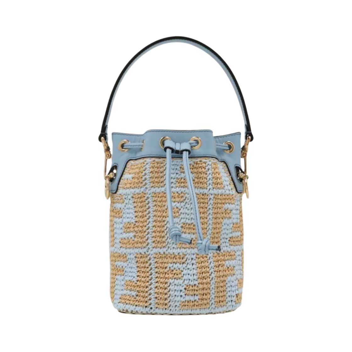 Fendi Mon Tresor Raffia Mini Bucket Bag Beige Light Blue