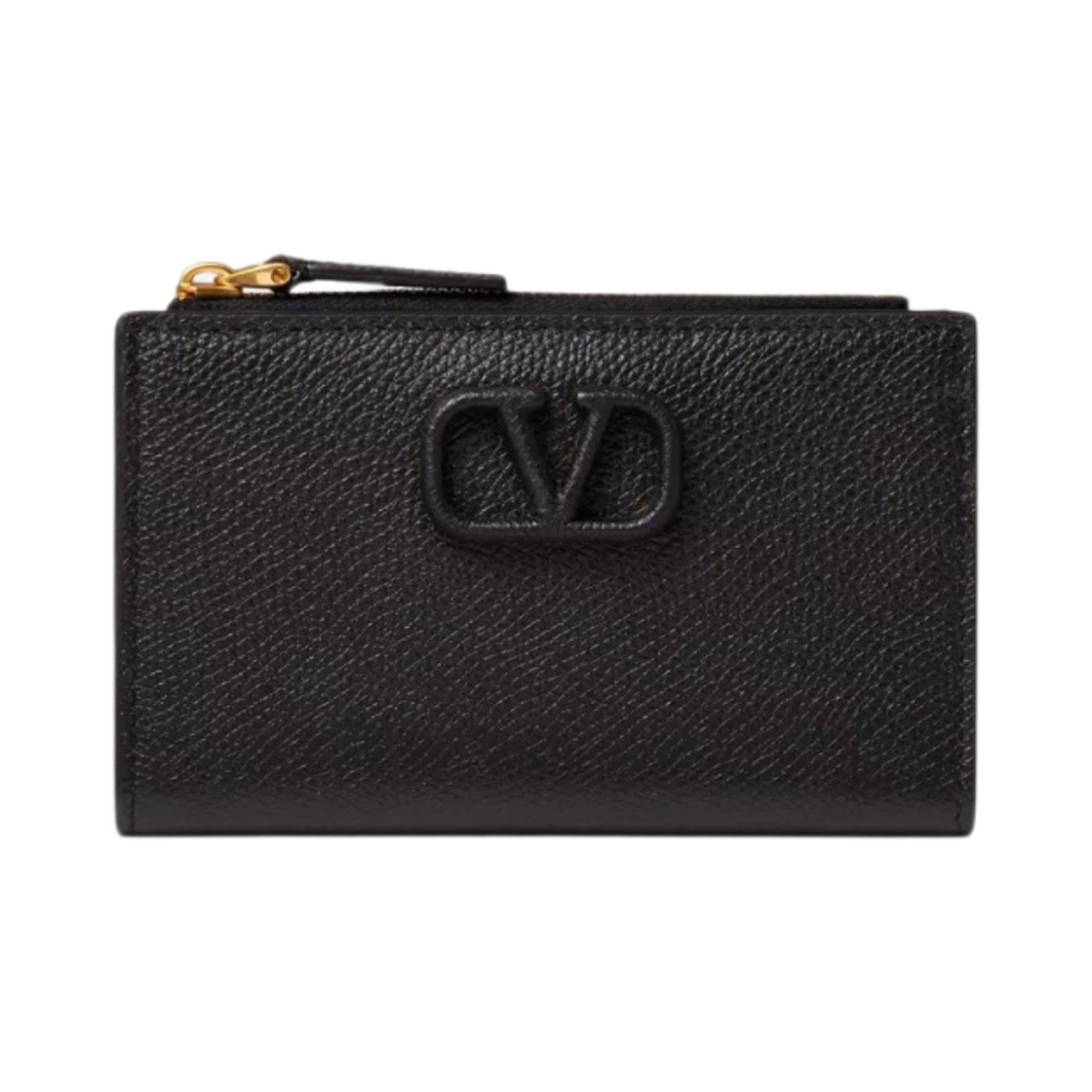 Valentino Vlogo Signature Grainy Calfskin Card Holder with Zip Black