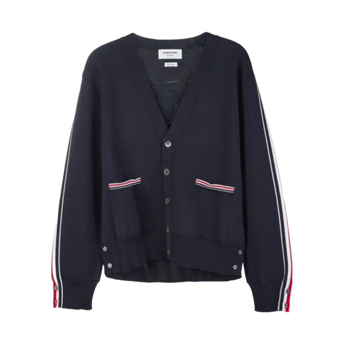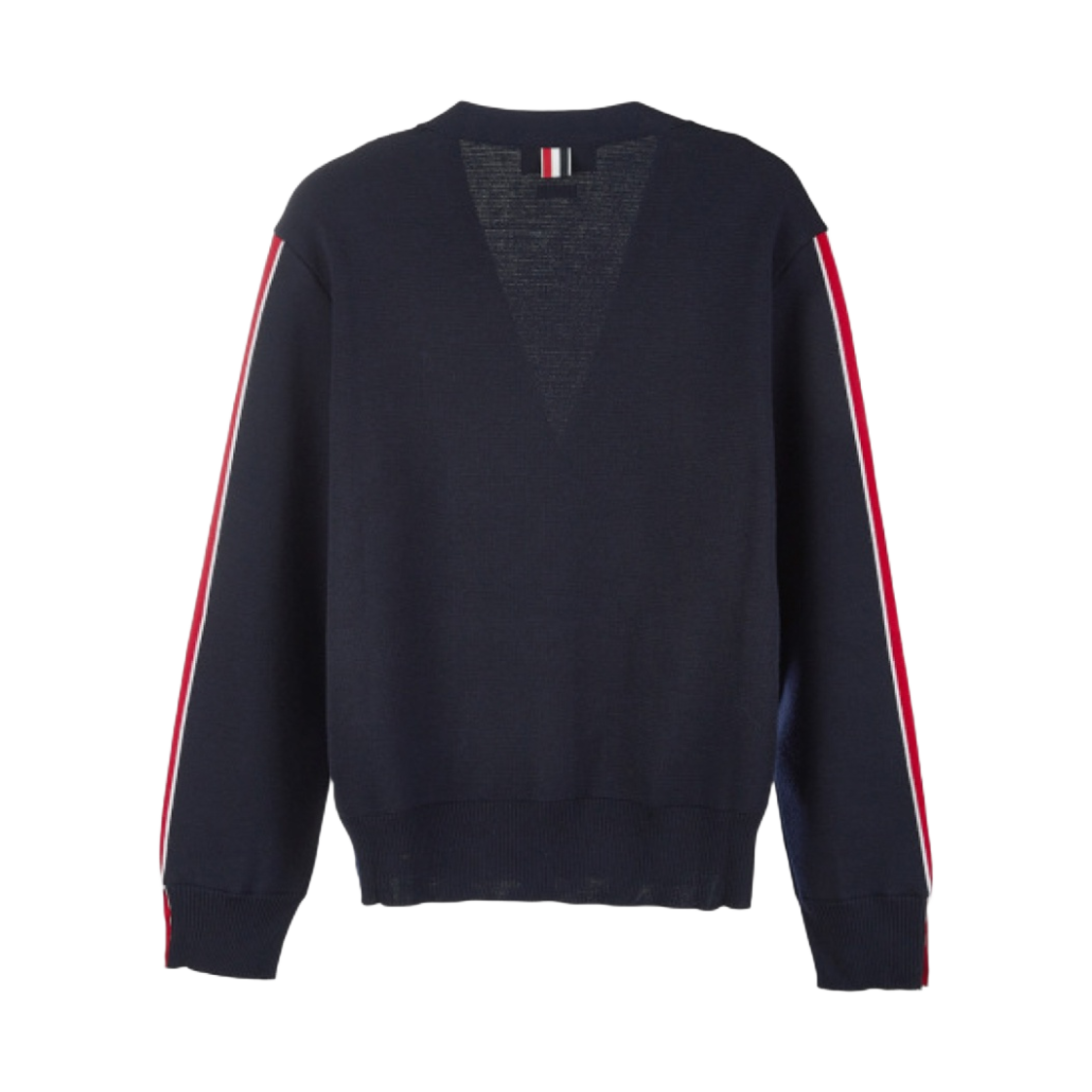 톰브라운 파인 메리노 울 인타르시아 스트라이프 밀라노 스티치 브이넥 가디건 네이비