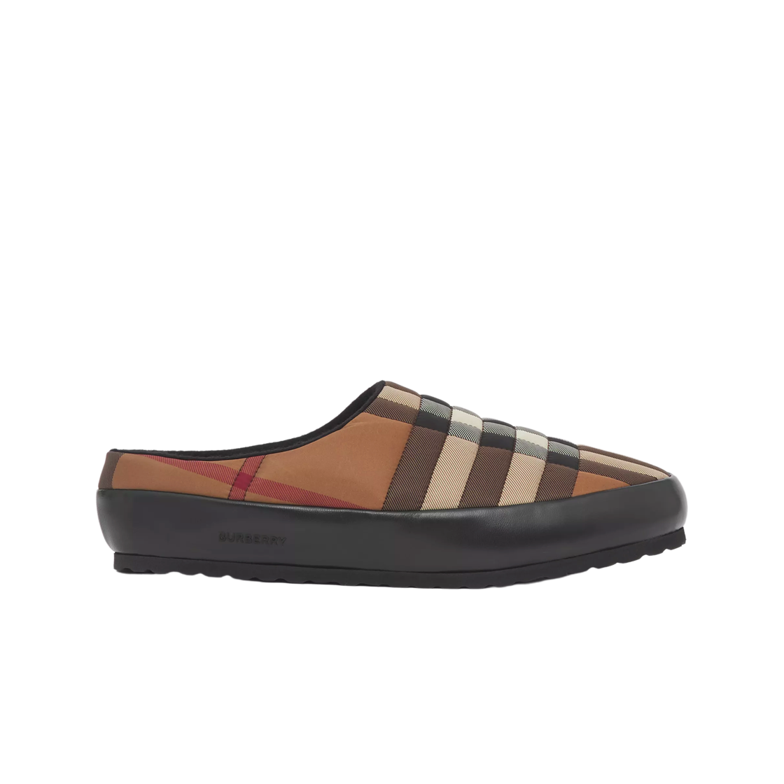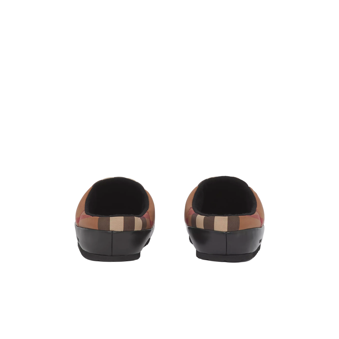 Burberry Check Nylon and Lambskin Slippers Birch Brown