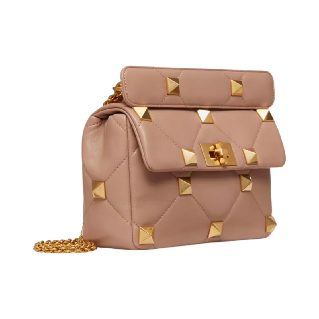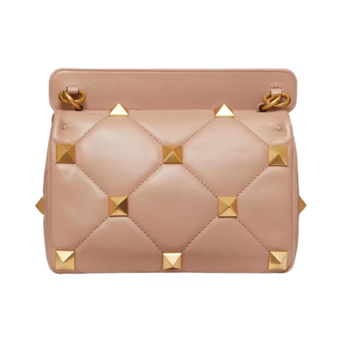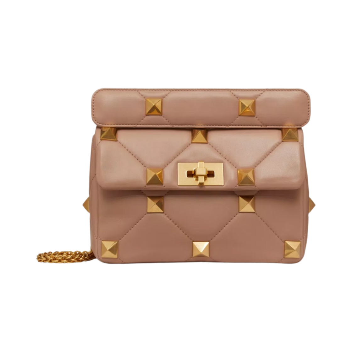 Valentino Medium Roman Nappa Stud The Shoulder Bag with Chain Rose Cannelle