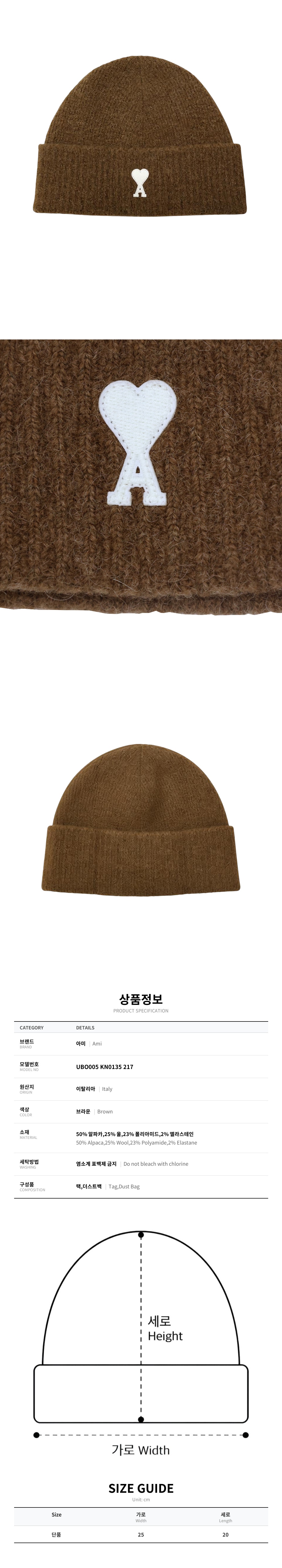 [15%쿠폰]아미 하트 로고 비니 브라운