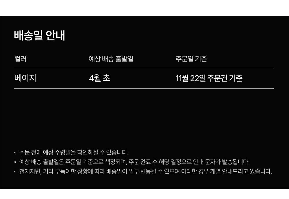 브랜드배송 무료 주문확인 후 90일 내 출고 예정