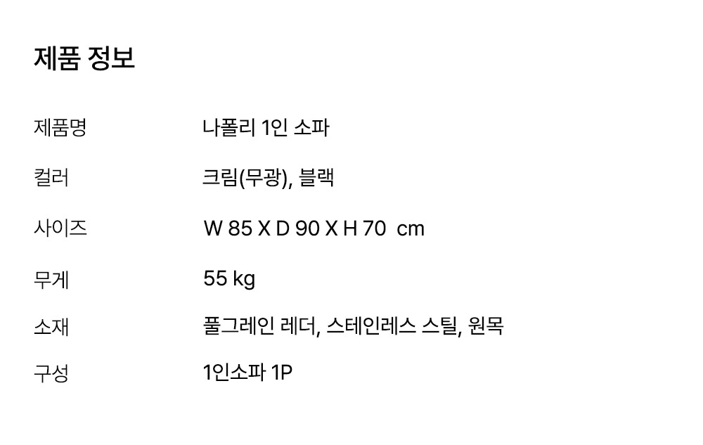 드비저리 프랑스 드비저리 나폴리 1인 가죽소파 블랙