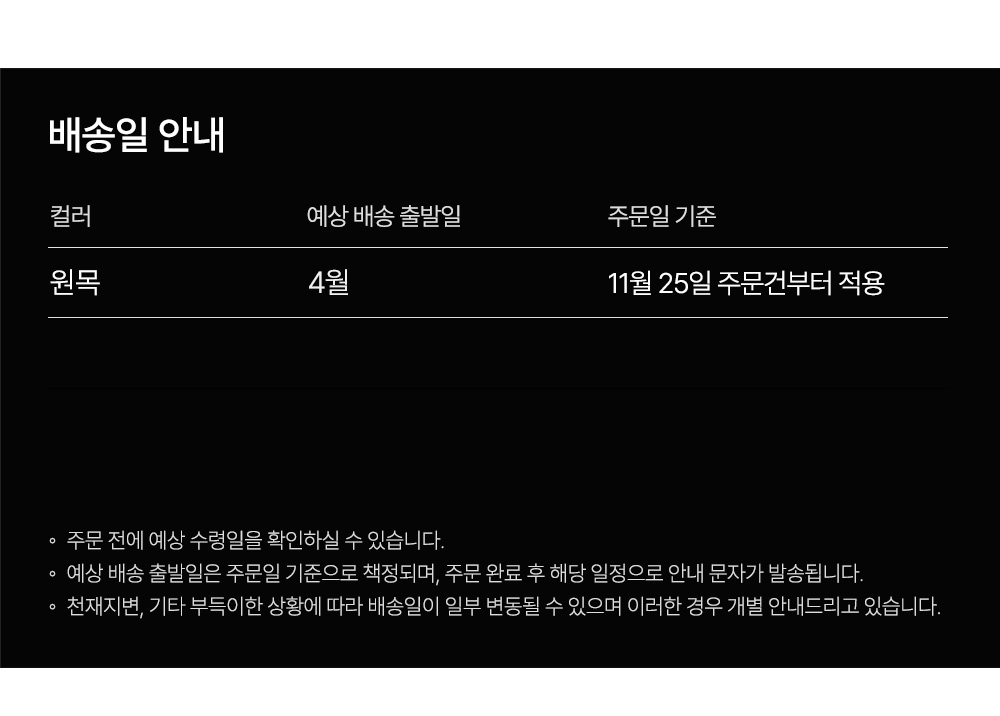 브랜드배송 무료 주문확인 후 90일 내 출고 예정