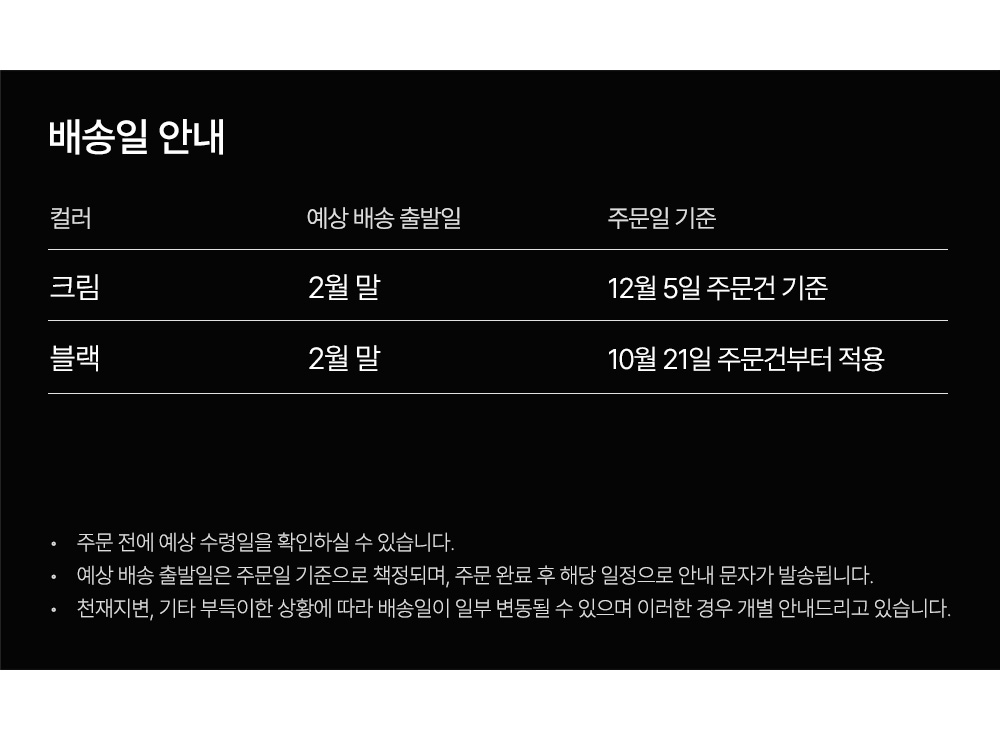 브랜드배송 무료 주문확인 후 90일 내 출고 예정