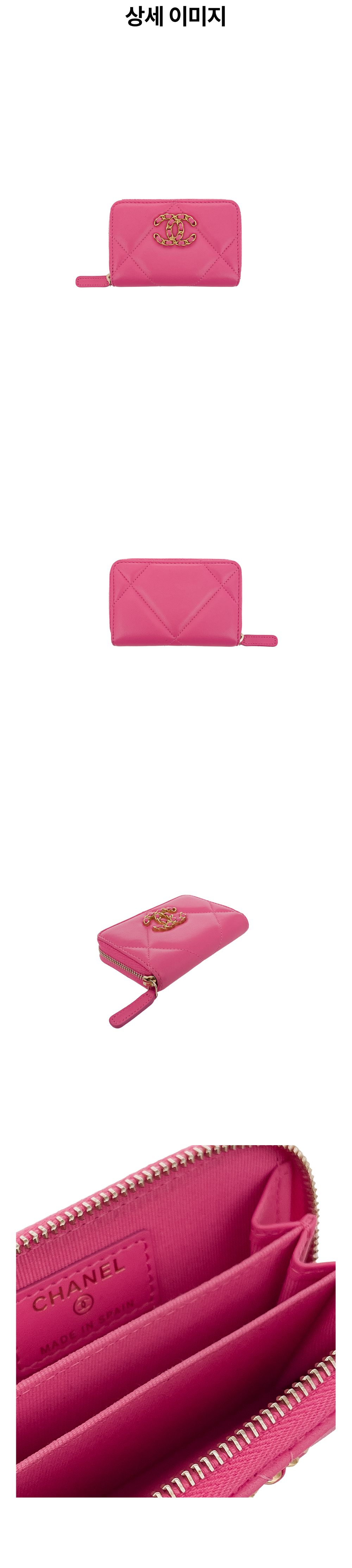 샤넬 CC로고 지퍼 카드지갑 코랄핑크 빈티지금장 램스킨(5ET2125)