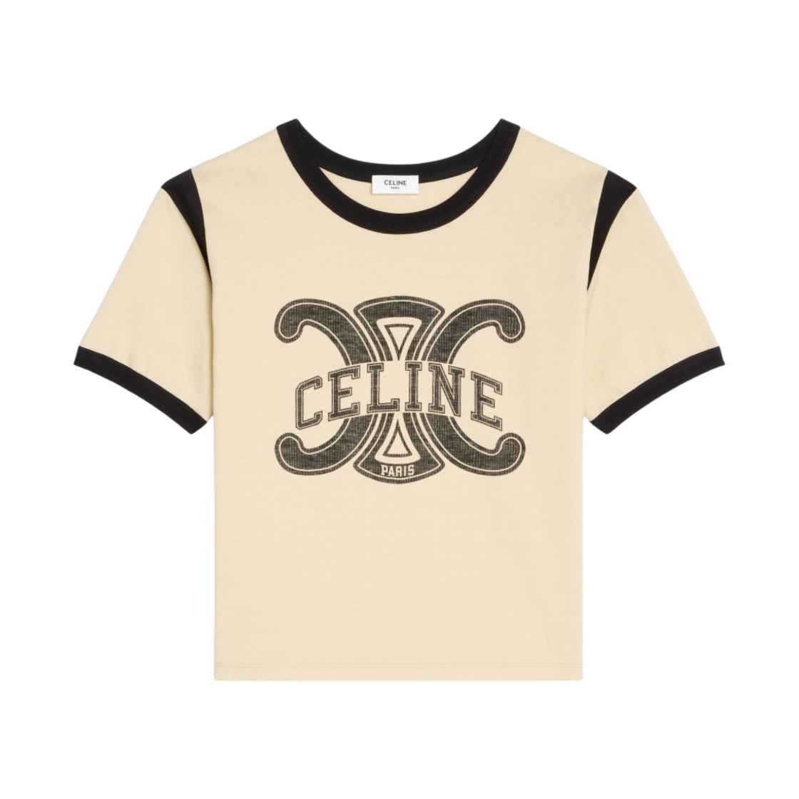 (W) Celine Triomphe T-Shirt in Cotton Jersey Butter Black