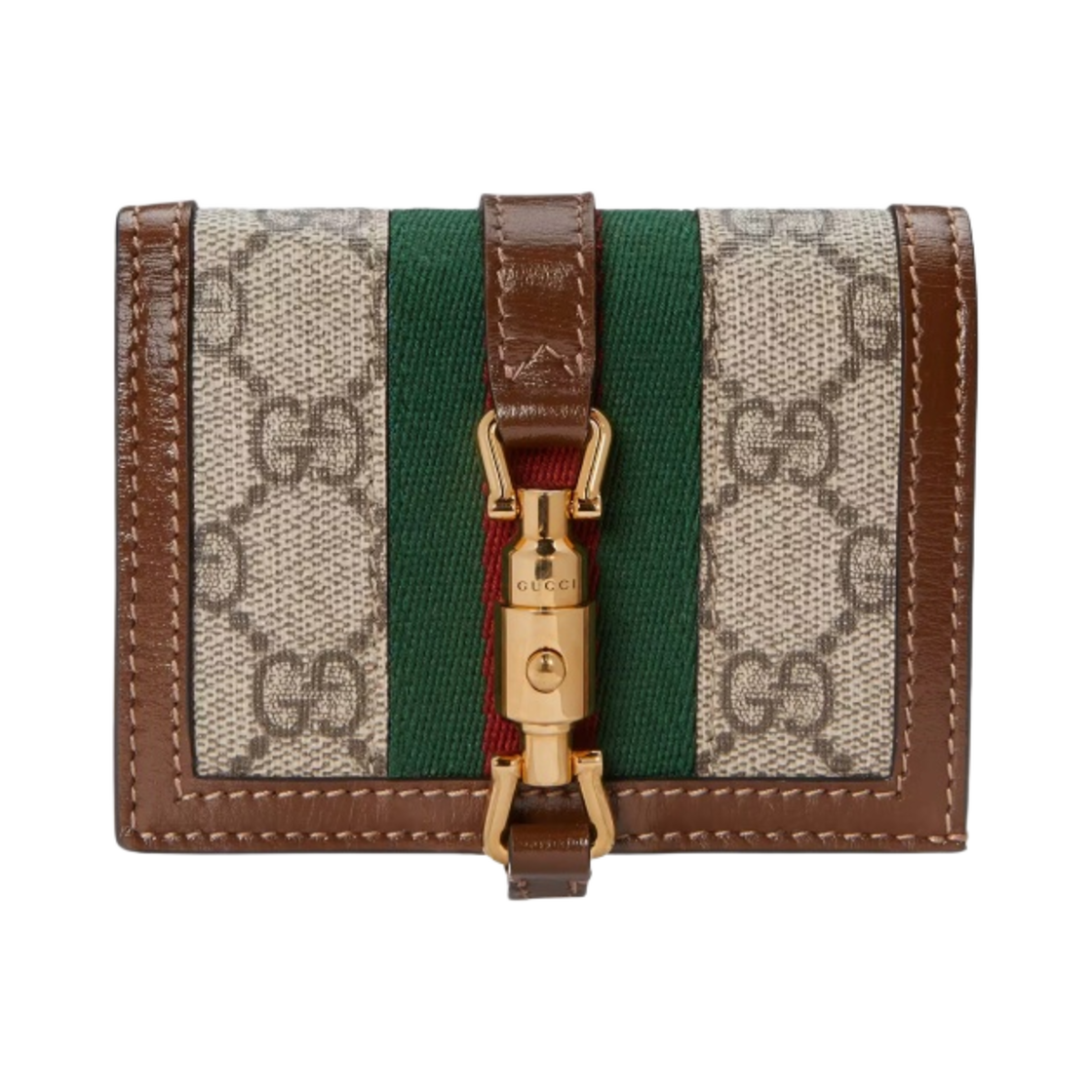 Gucci Jackie 1961 GG Supreme Canvas Card Case Wallet Beige Ebony