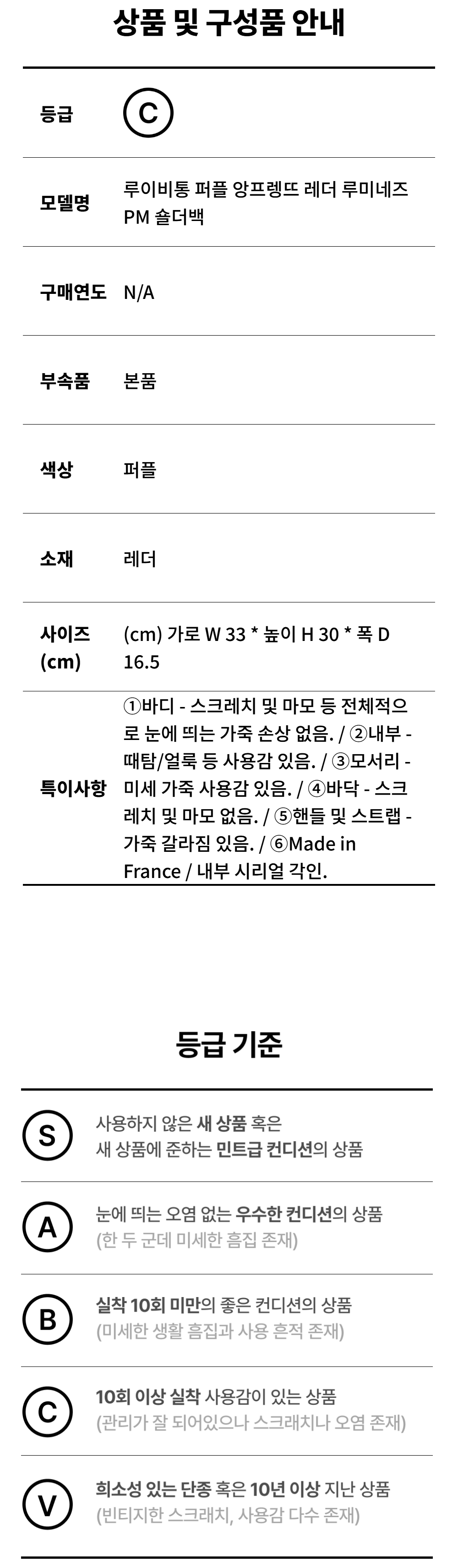 루이비통 퍼플 앙프렝뜨 레더 루미네즈 PM 숄더백 C-A41432