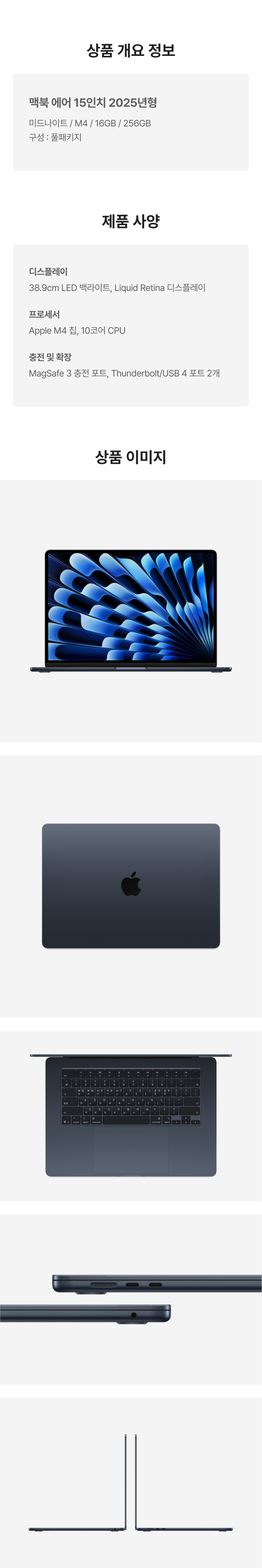 [A등급] 리퍼비시 2025 맥북 에어 15 M4 256기가 SSD 16기가 램 미드나이트