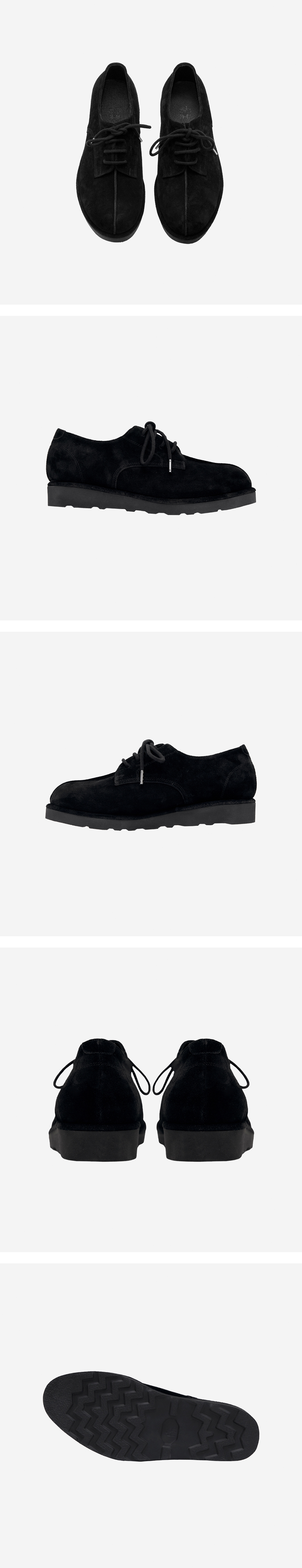 *본 제품은 예약주문 제품으로, 3/4(수) 15:00 ~ 3/8(일) 15:00까지 접수를 진행합니다. *5/8(금) ~ 5/12(화)부터 순차적으로 발송될 예정이며, 주문 완료 시점 기준 약 8~9주 소요됩니다. *제작 완료 시 예정된 일정보다 빠른 시일 내 발송될 수 있습니다. center cut shoes 더비슈즈와 왈라비슈즈 사이 뉘앙스를 고려해 디자인된 신규 슈즈. 카우 스웨이드 기반으로, 엔지니어드 부츠에서 따온 특유의 쉐입으로 기존 직기류 및 스웻팬츠류 모두 훌륭한 매칭으로, 전신의 실루엣을 완성도 높고 멋지게 마무리할 수 있게끔 고안된 형태감입니다. 전면 굵은 센터컷이 특징적으로, 더비 대비 스포티한 창을 사용하여 보다 캐주얼하게 활용 가능하도록 완성했습니다. 사이즈 2 / 3 / 4 각 260-265 / 270-275 / 280-285 *사이즈 팁 착화감 면에서는 개인차 있으나, 정사이즈 추천드립니다.
