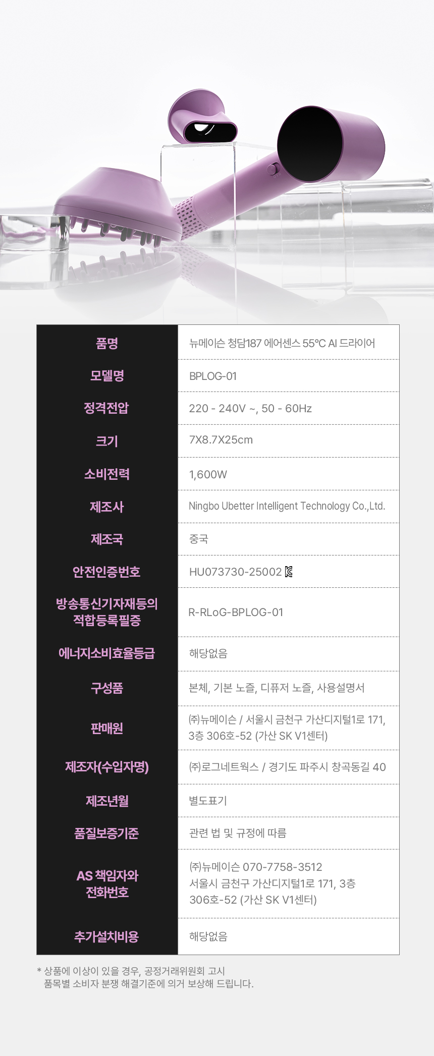 뉴메이슨 청담187 에어센스 AI 55°C 에어 드라이어