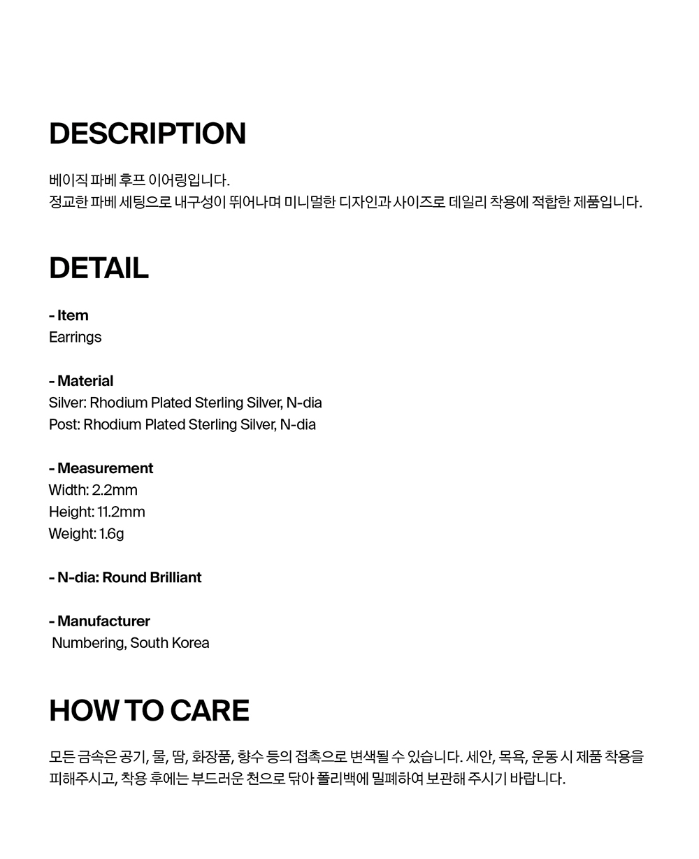 넘버링 #3122 베이직 파베 후프 이어링 실버