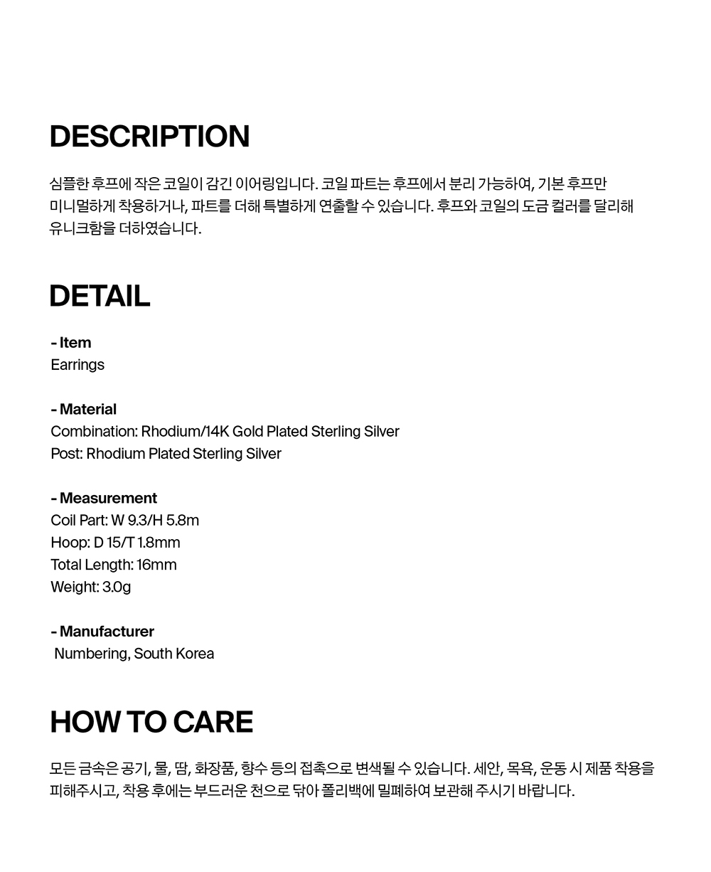 넘버링 #4203 랩 코일 훕 이어링 콤비