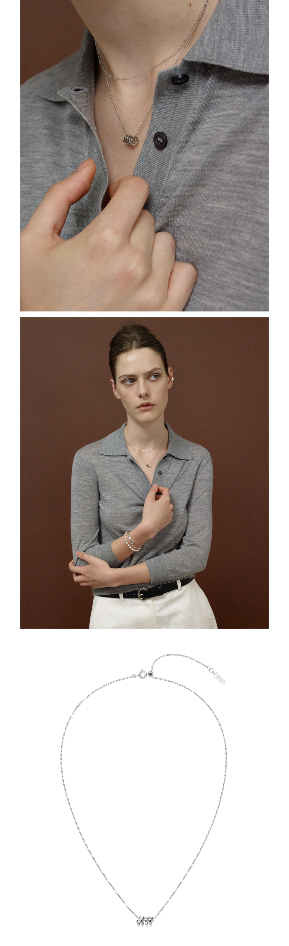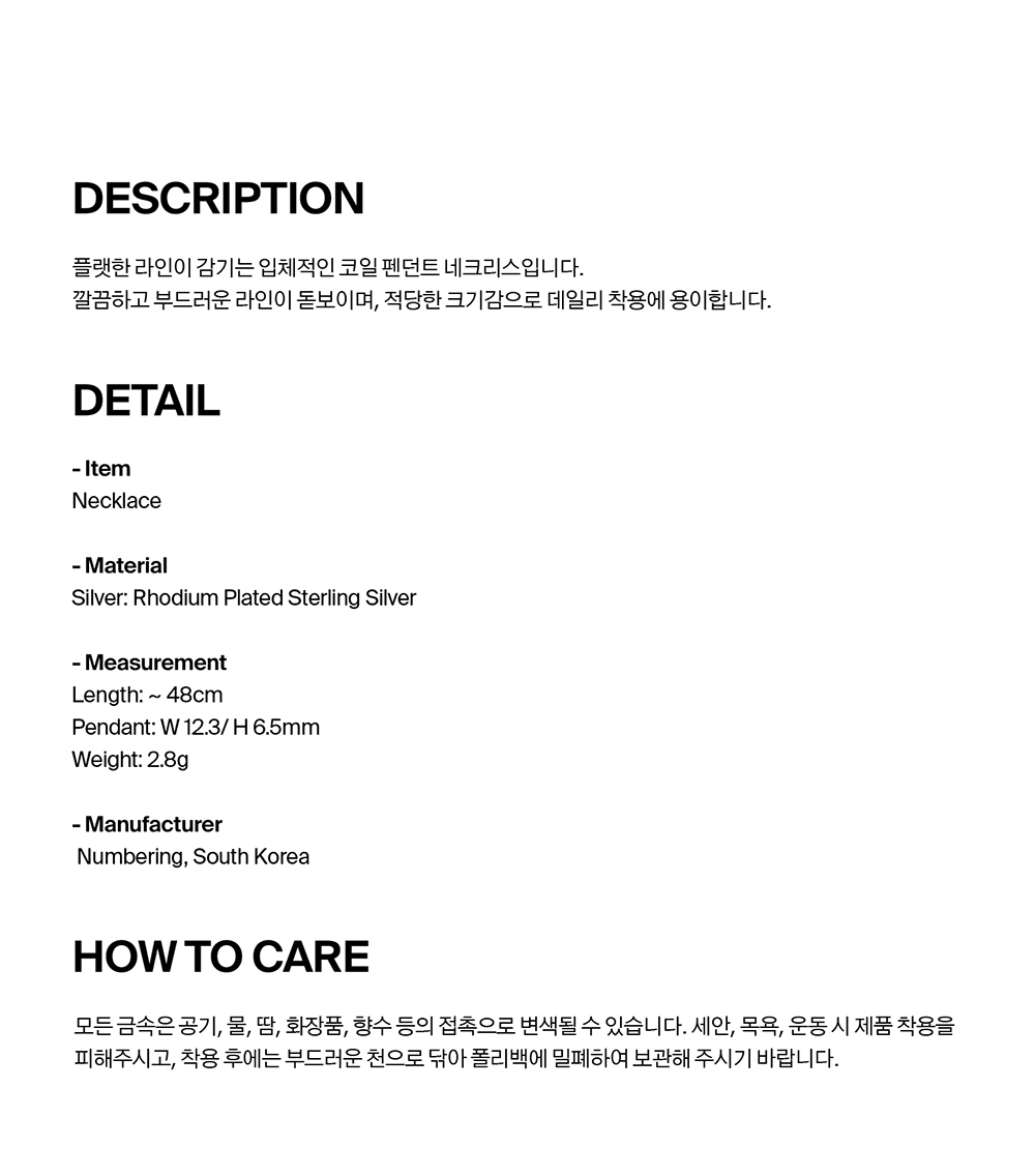 넘버링 #4809 플랫 코일 펜던트 네크리스 실버