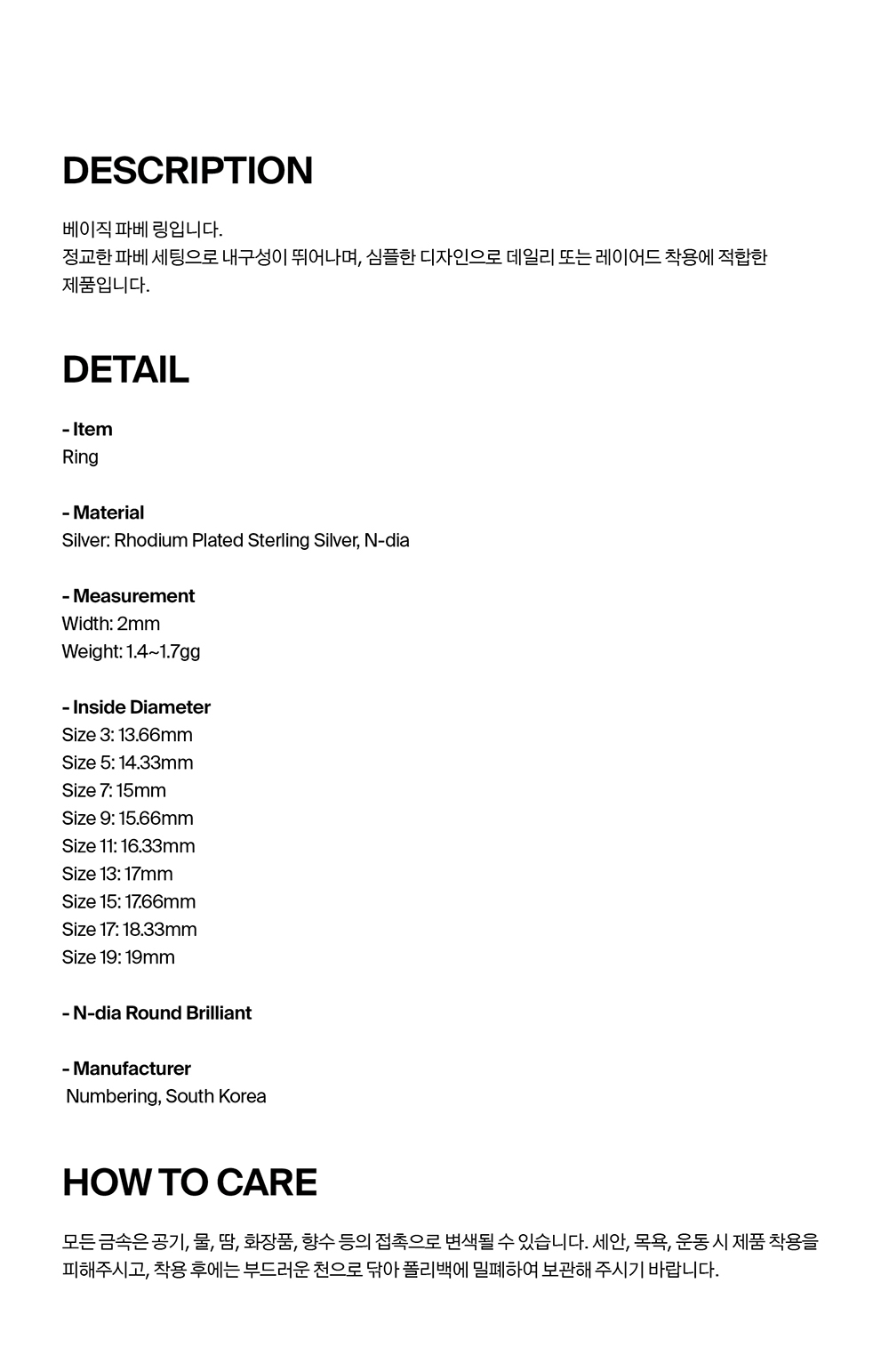 넘버링 #3413 파베 스태커블 링 실버