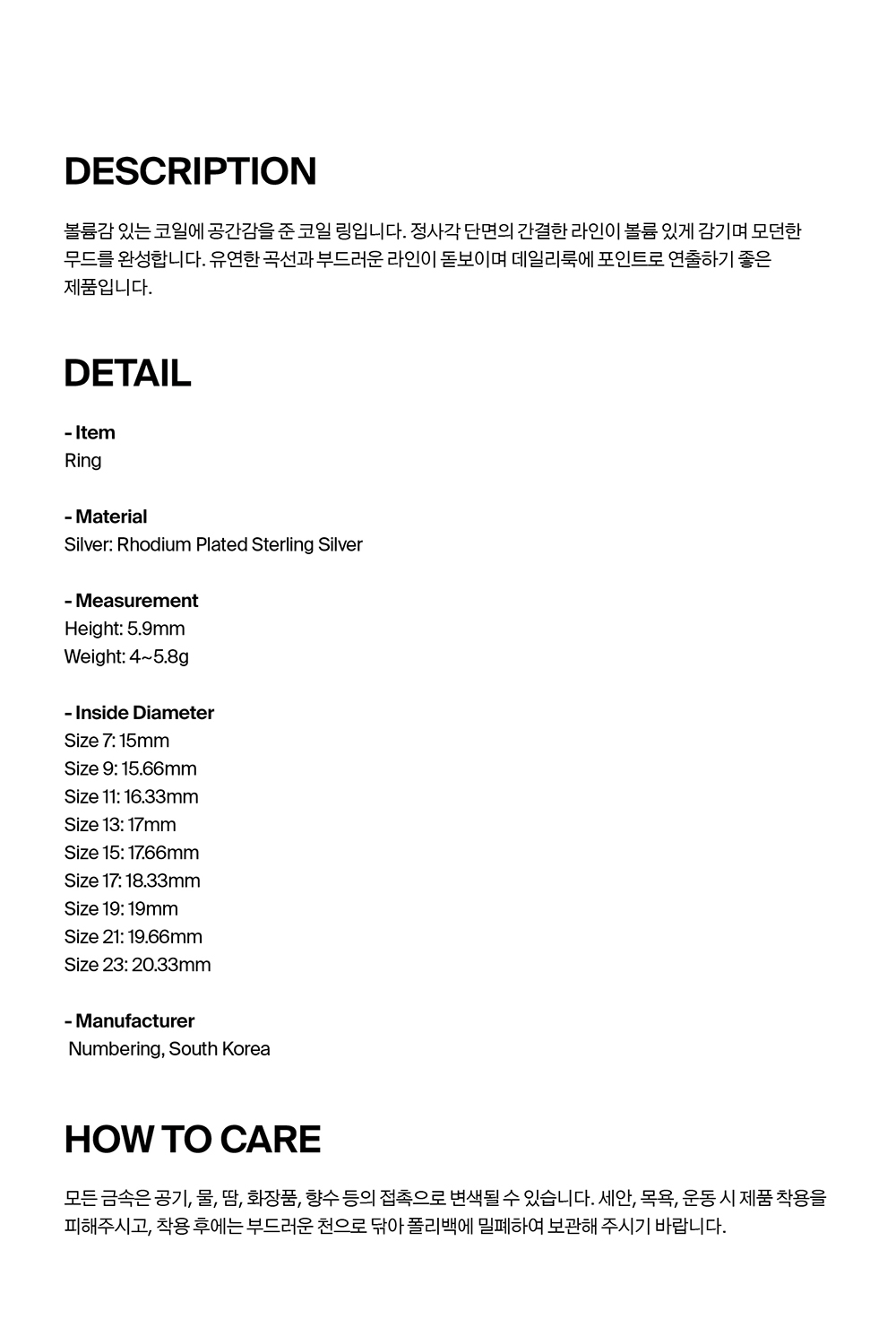 넘버링 #4600 스퀘어 코일 링 실버 (1.5턴)