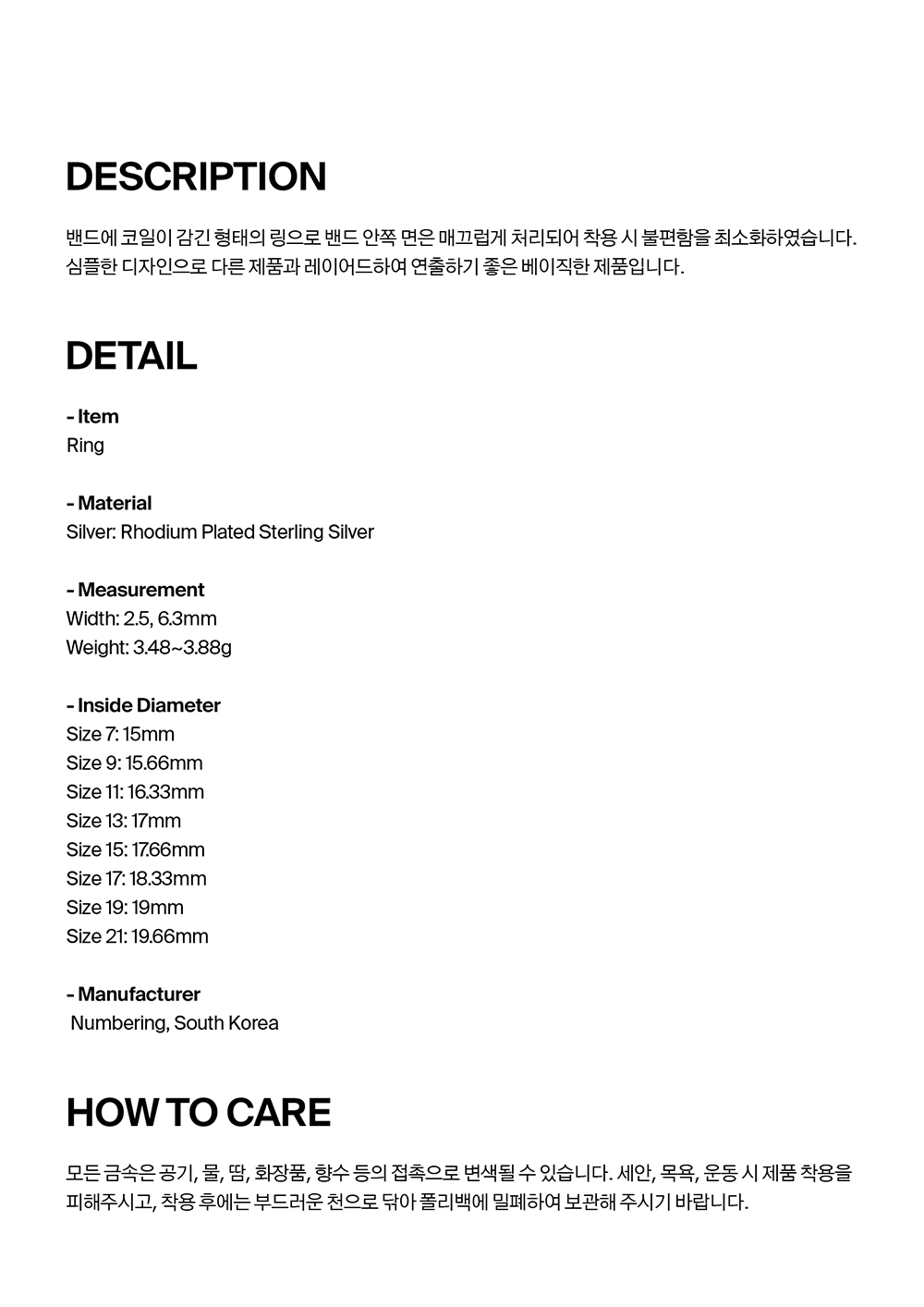 넘버링 #4603 랩 코일 링 실버