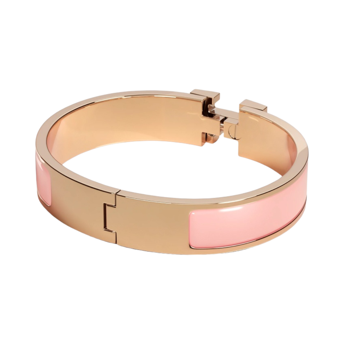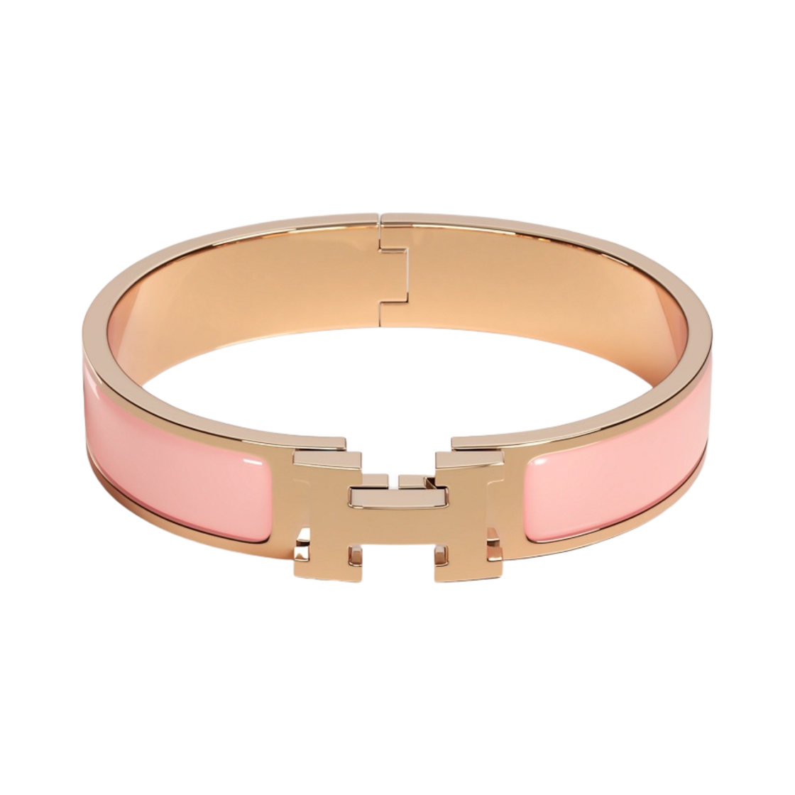 (W) Hermes Clic H Bracelet Rose Gold & Rose Candeur