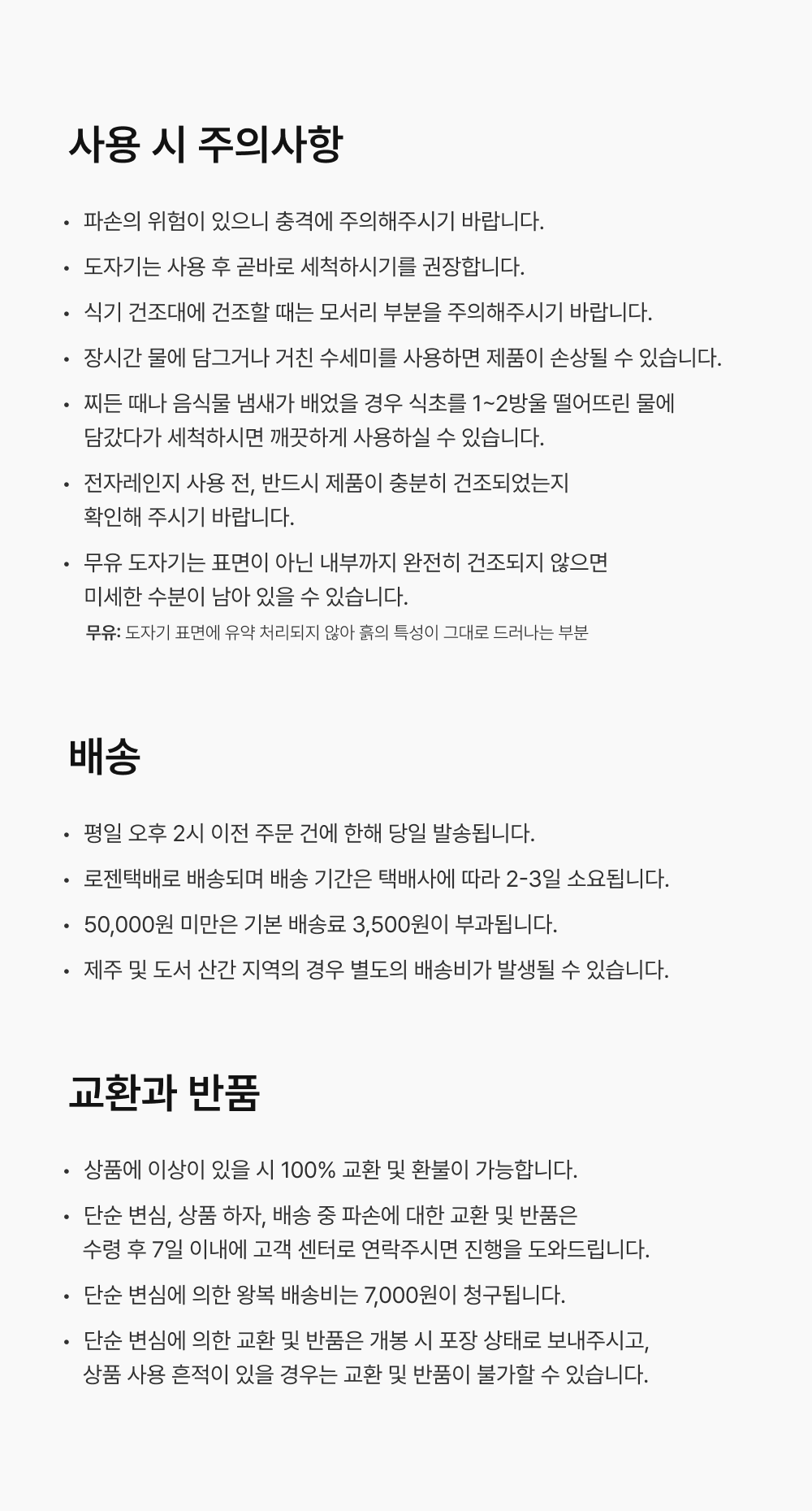 교환 및 반품 안내