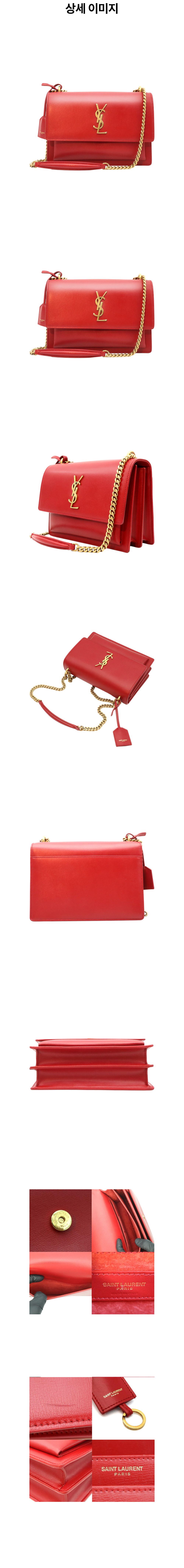 생로랑 442906 레드 카프스킨 금장 체인 선셋 미듐 숄더백