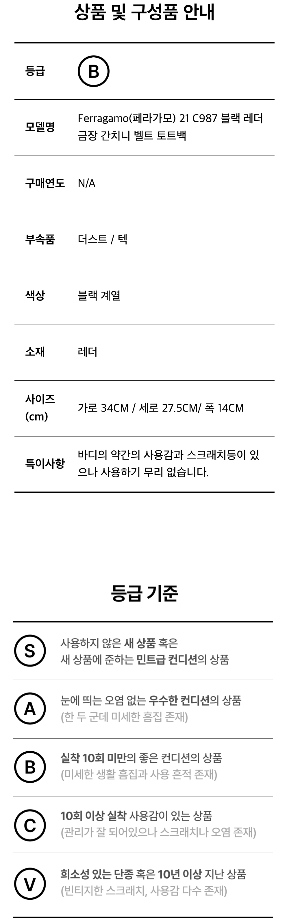 페레가모 21 C987 블랙 레더 금장 간치니 벨트 토트백