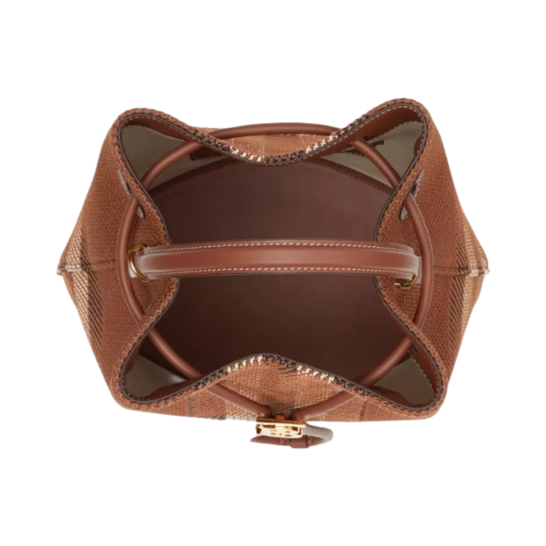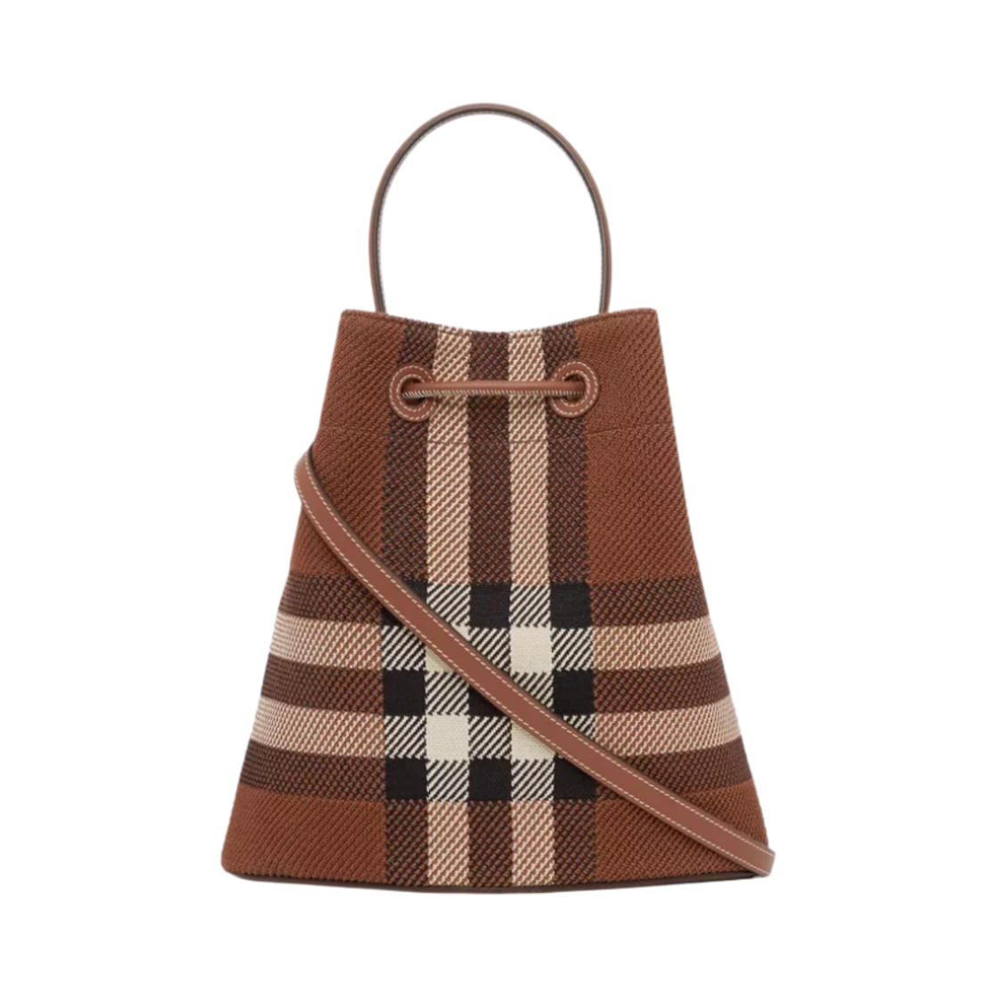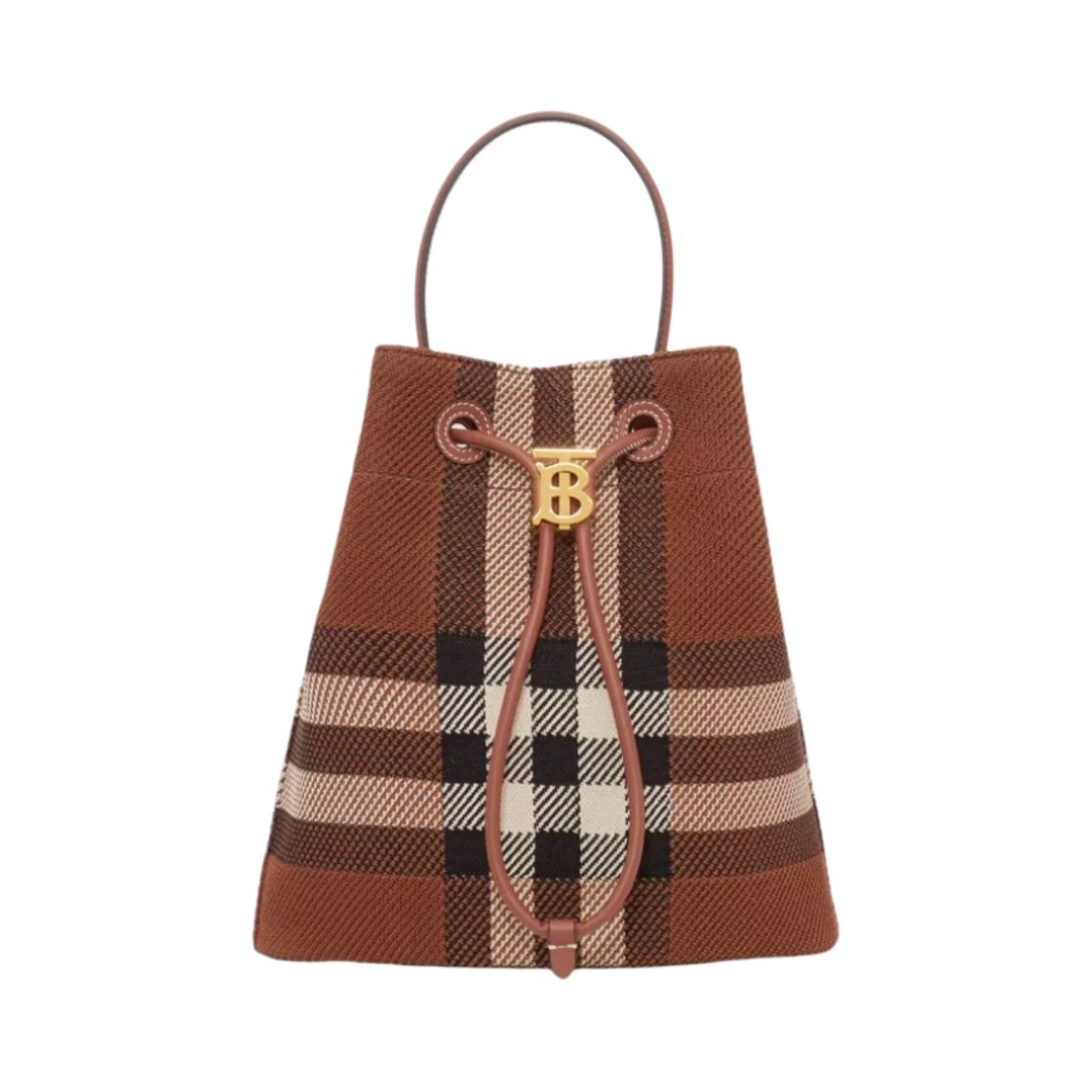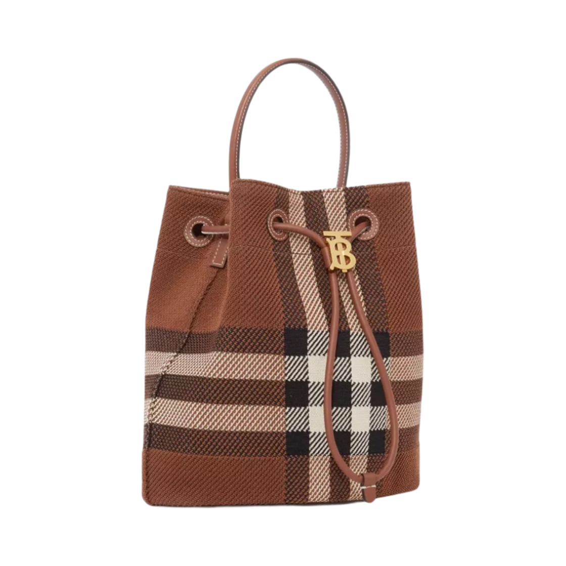 Burberry Knitted Check and Leather Small TB Bucket Bag Dark Birch Brown