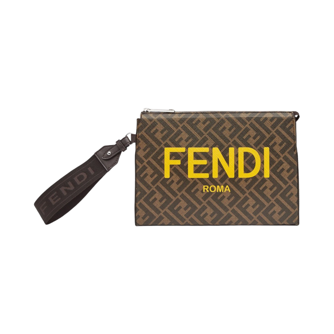 Fendi Clutch Pack Pouch FF Fabric Brown